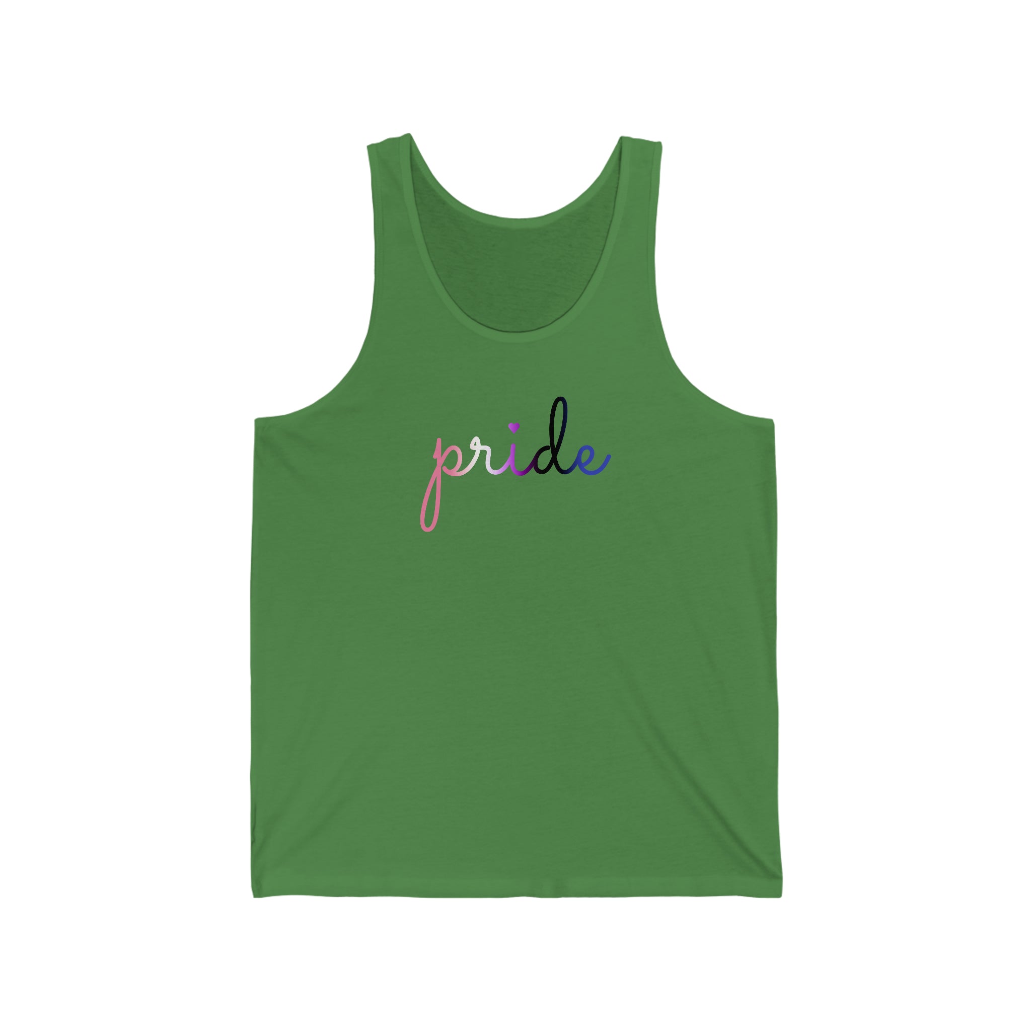 Genderfluid Pride Tank-Top: Flowing Cursive 'Pride' in Gradient Hues
