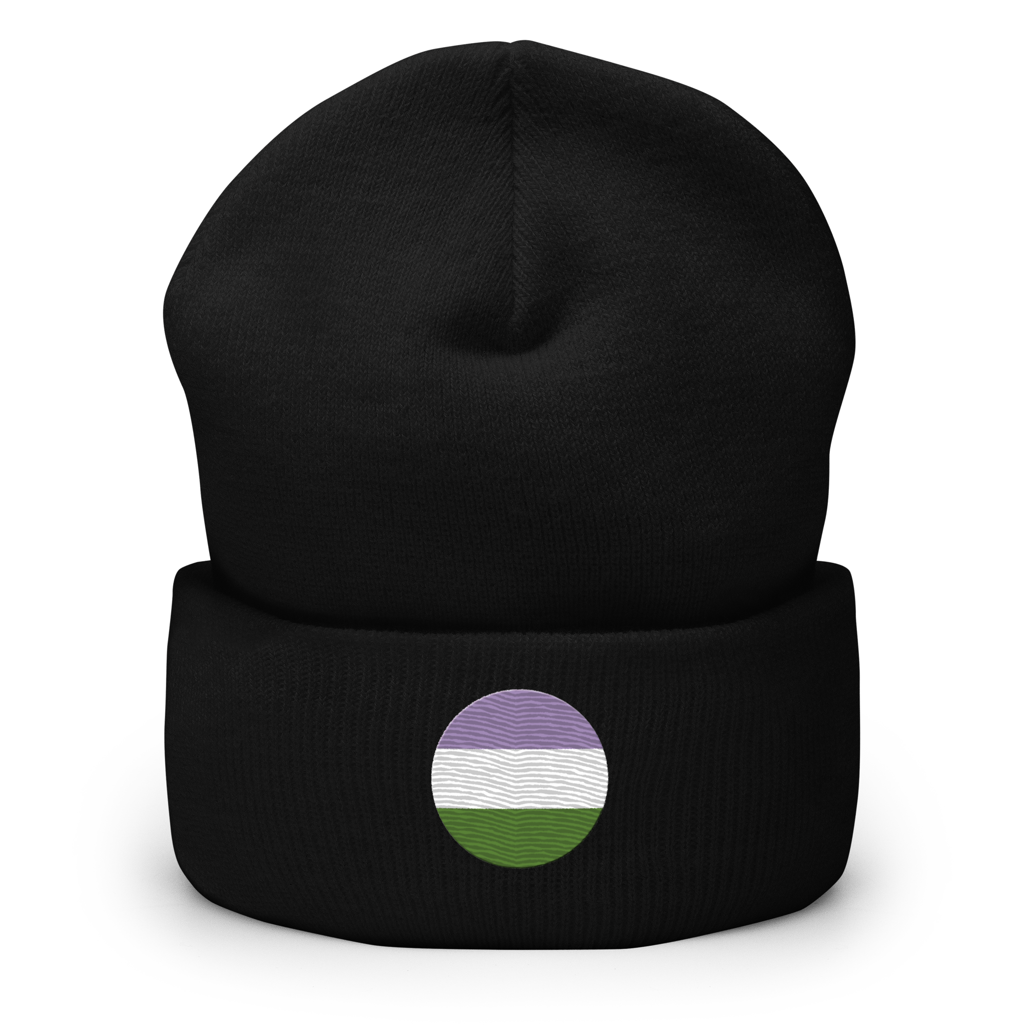 Genderqueer Flag Embroidered Circle Beanie: Celebratory LGBTQ+ Pride Design