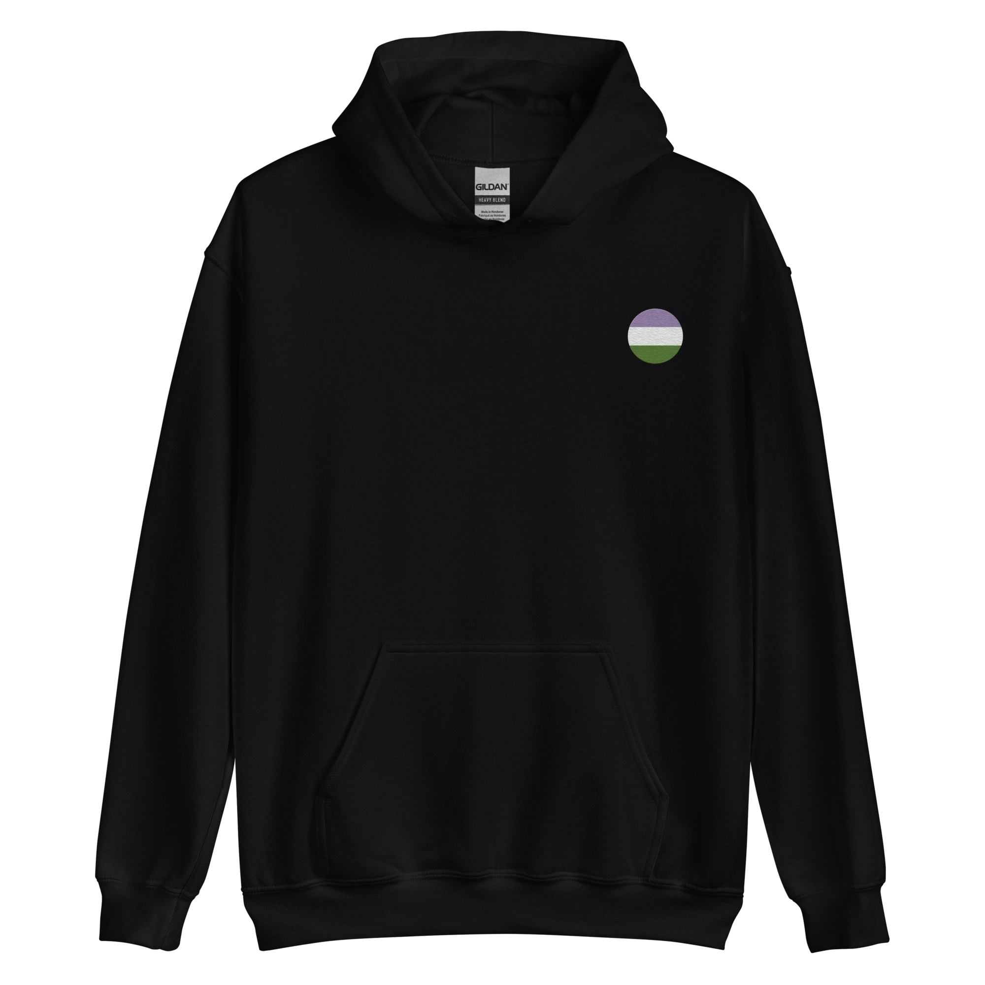 Genderqueer Flag Embroidered Circle Hoodie: Celebratory LGBTQ+ Pride Design