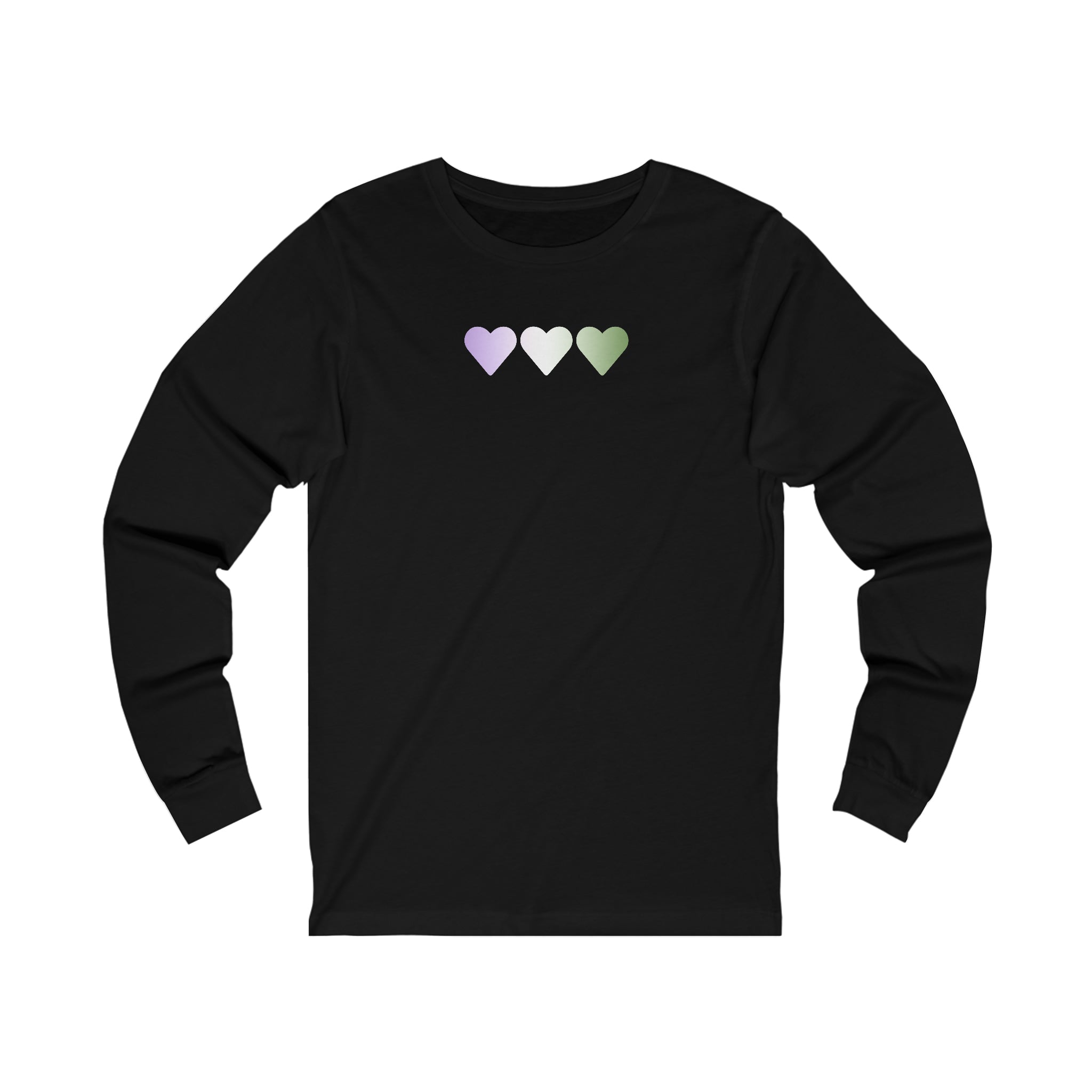 Genderqueer Flag Hearts Long Sleeve Tee: Pride LGBTQ+ Gradient Design