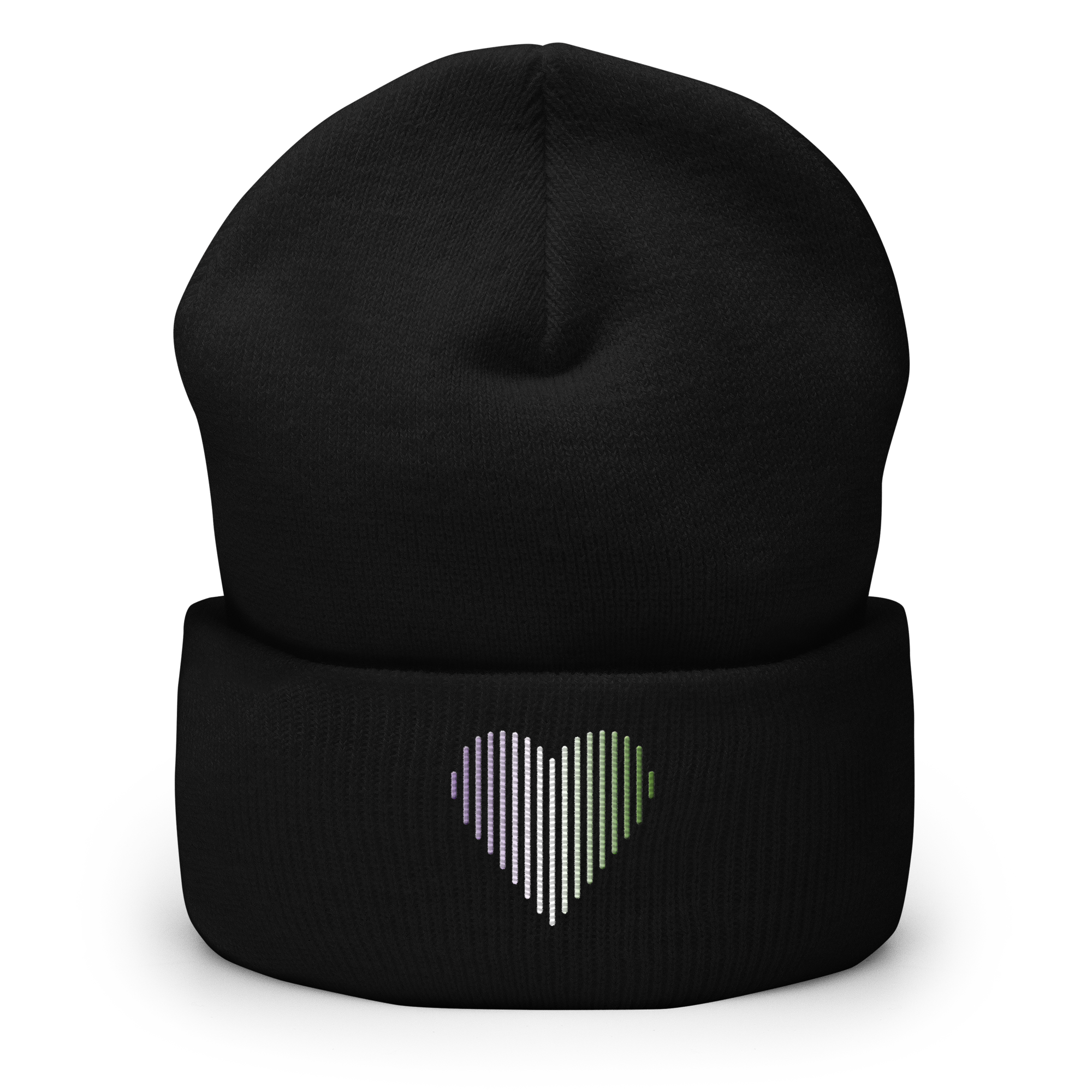 Genderqueer Heart Lines Beanie: Embroidered Pride Gradient Hat