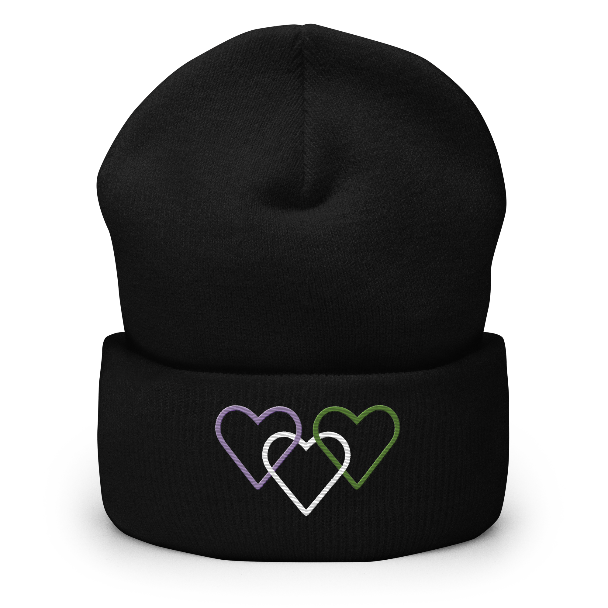 Genderqueer Pride Beanie: Interlaced Heart Outlines Embroidered Hat