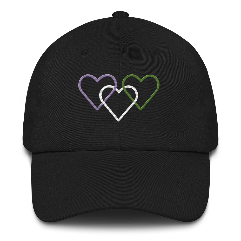 Genderqueer Pride Hat: Interlaced Heart Outlines Embroidered Cap