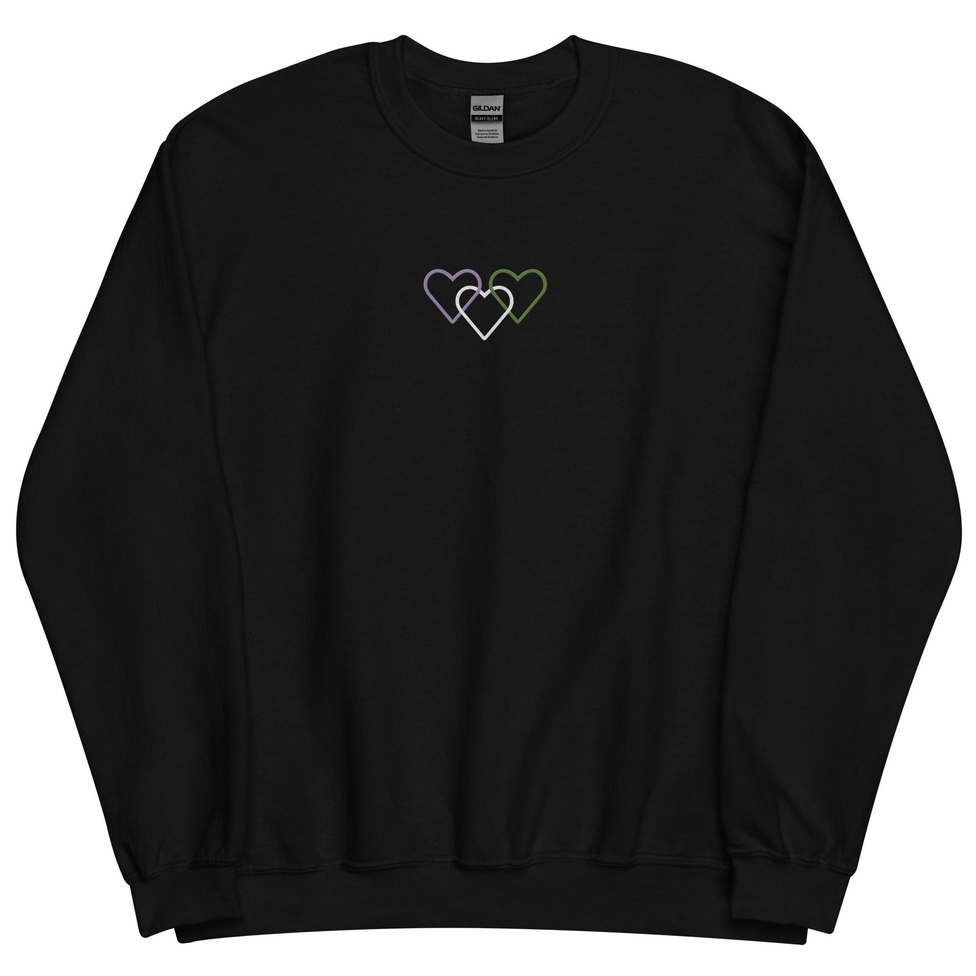 Genderqueer Pride Sweatshirt: Interlaced Heart Outlines Embroidered Sweater