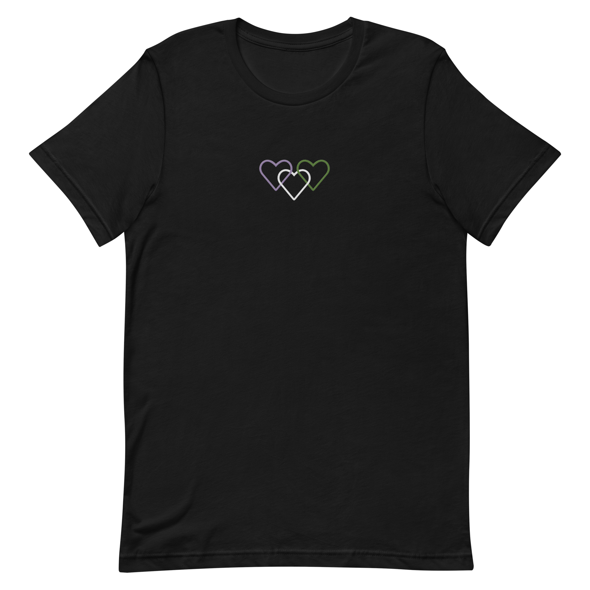 Genderqueer Pride Tee: Interlaced Heart Outlines Embroidered T-Shirt