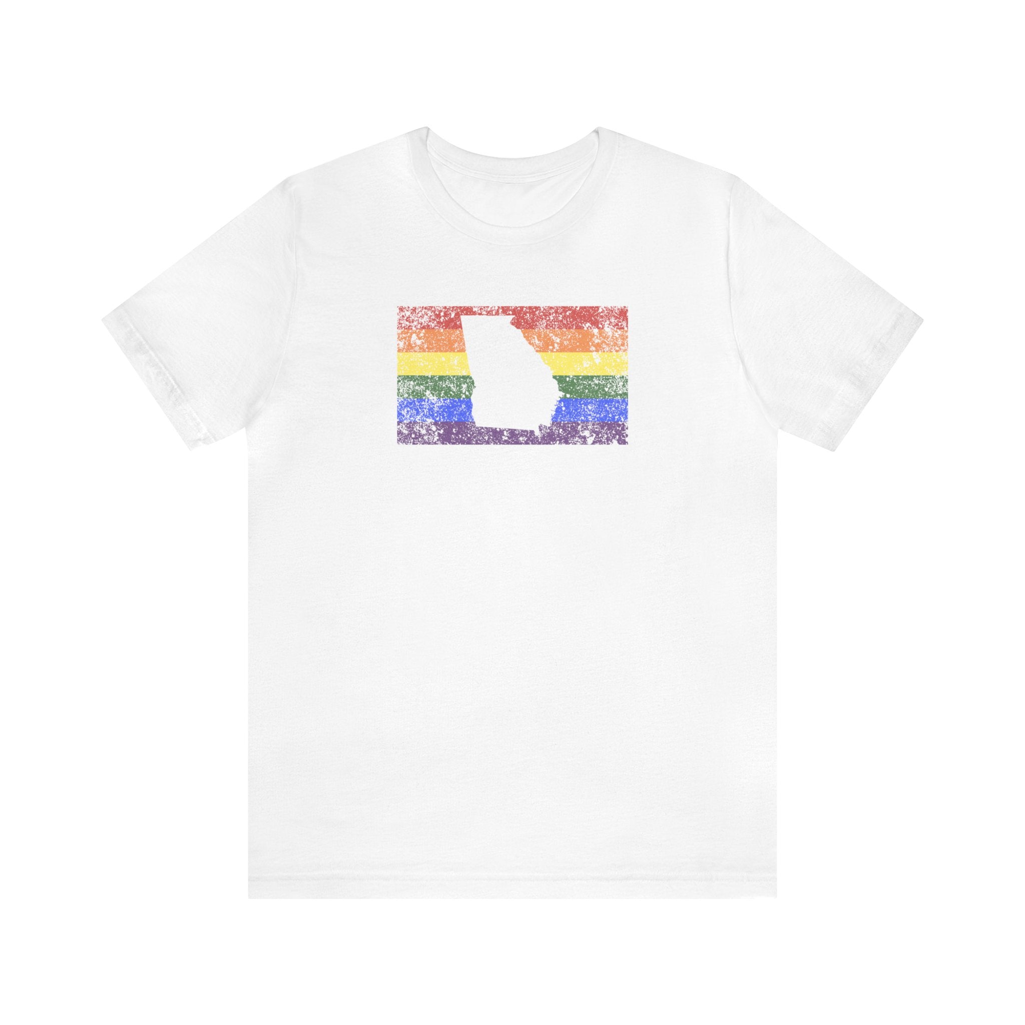 Georgia Pride Flag Tee: Rainbow LGBTQ+ State Silhouette Distressed Shirt