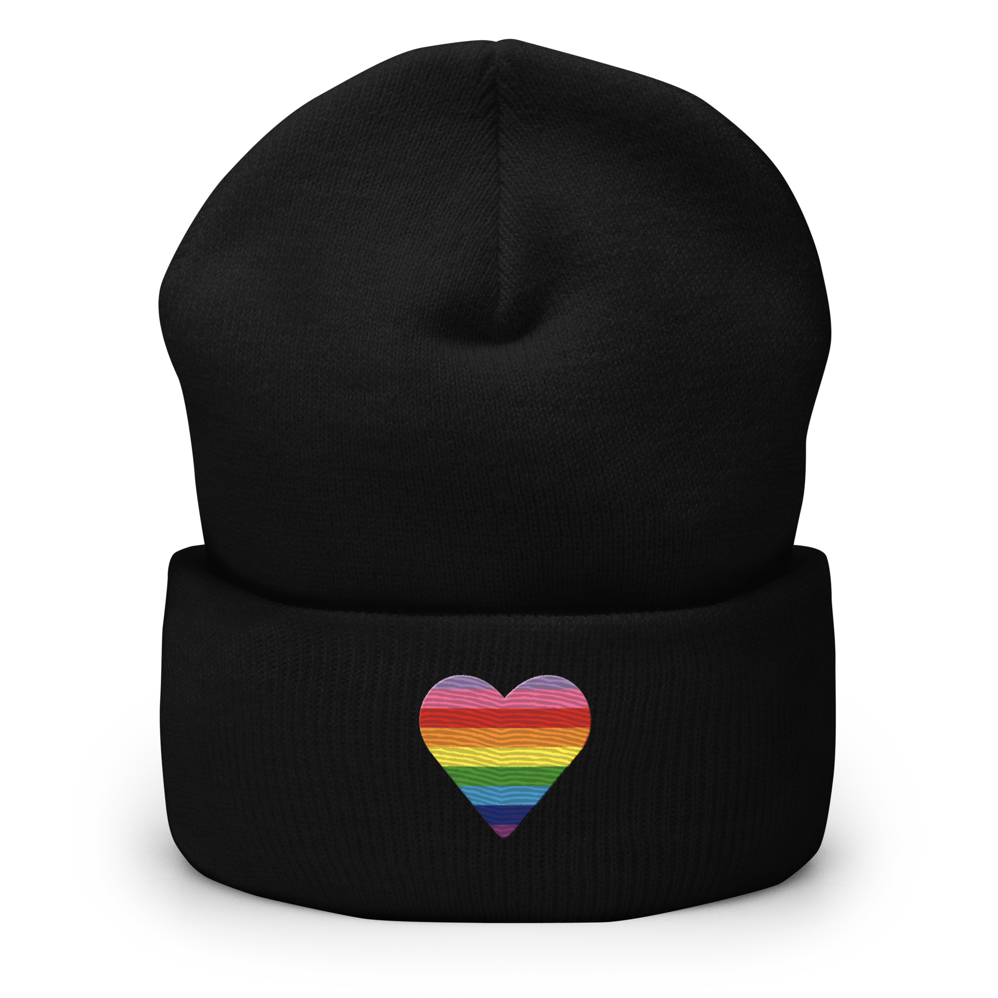 Gilbert Baker Pride Flag Embroidered Heart Beanie: Celebratory LGBTQ+ Pride Design