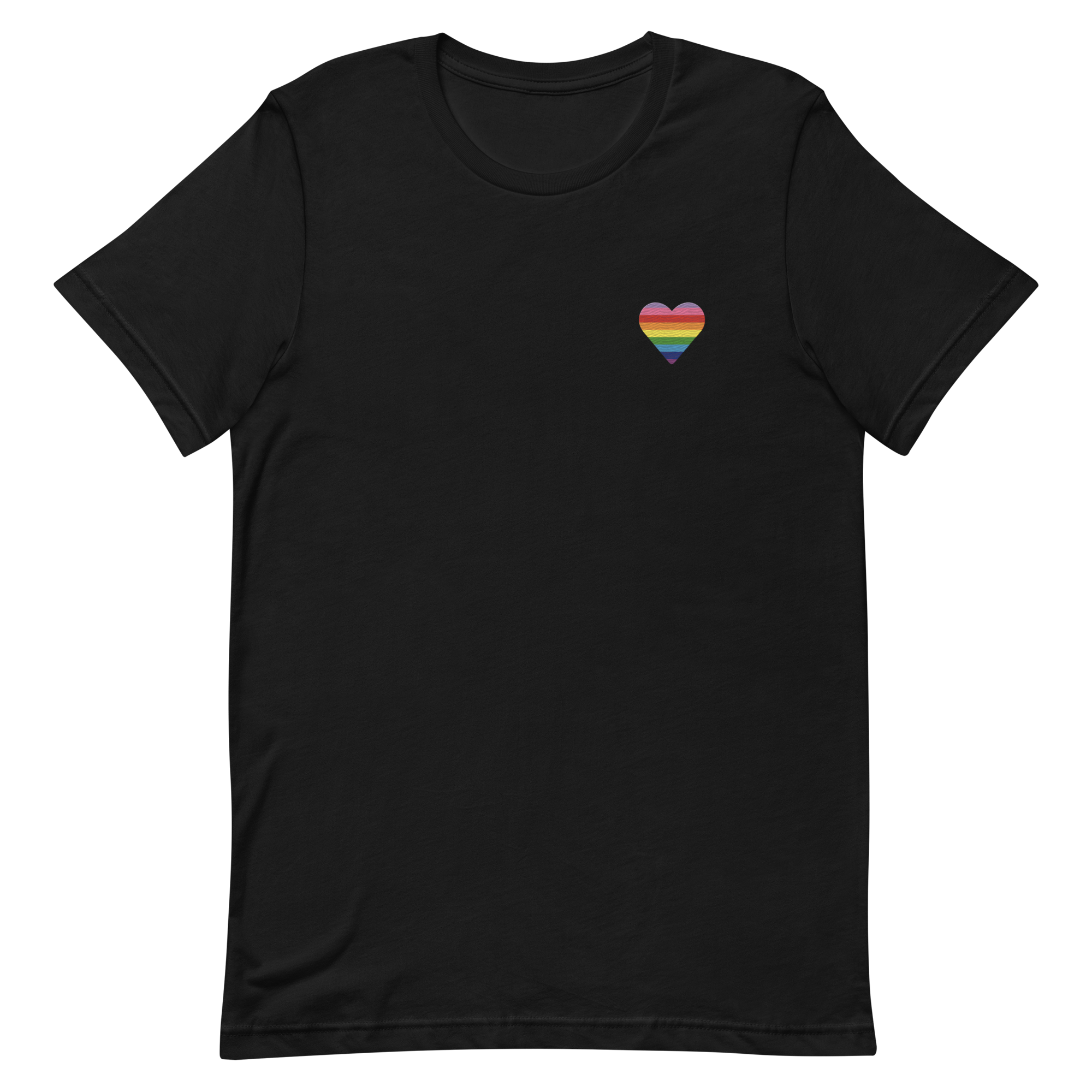 Gilbert Baker Pride Flag Embroidered Heart T-Shirt: Celebratory LGBTQ+ Pride Design