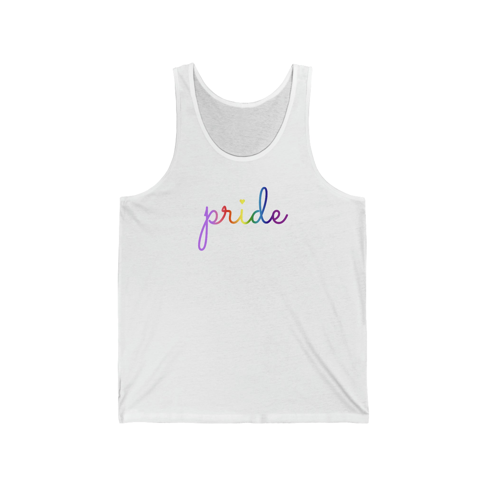 Gilbert Baker Pride Flag Tank-Top: Flowing Cursive 'Pride' in Gradient Hues
