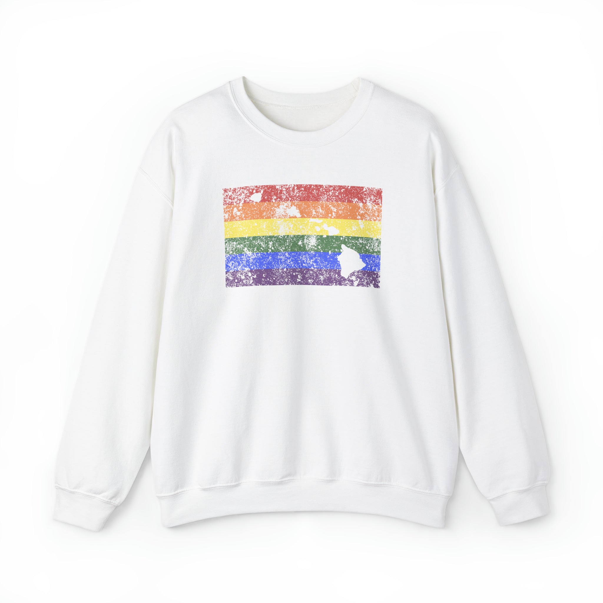 Hawaii Pride Flag Sweater: Rainbow LGBTQ+ State Silhouette Distressed Sweatshirt