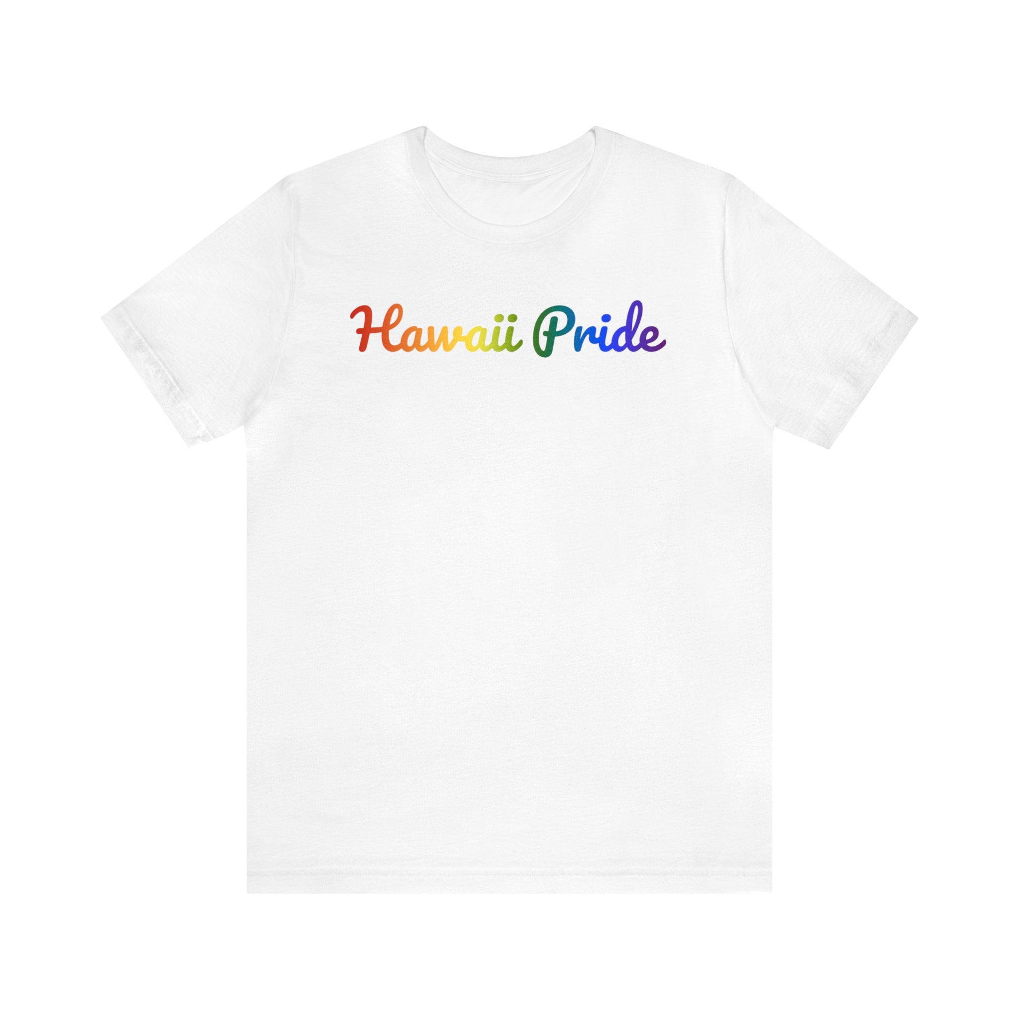Hawaii Pride T-Shirt: Flowing Cursive Design with LGBTQ+ Gradient