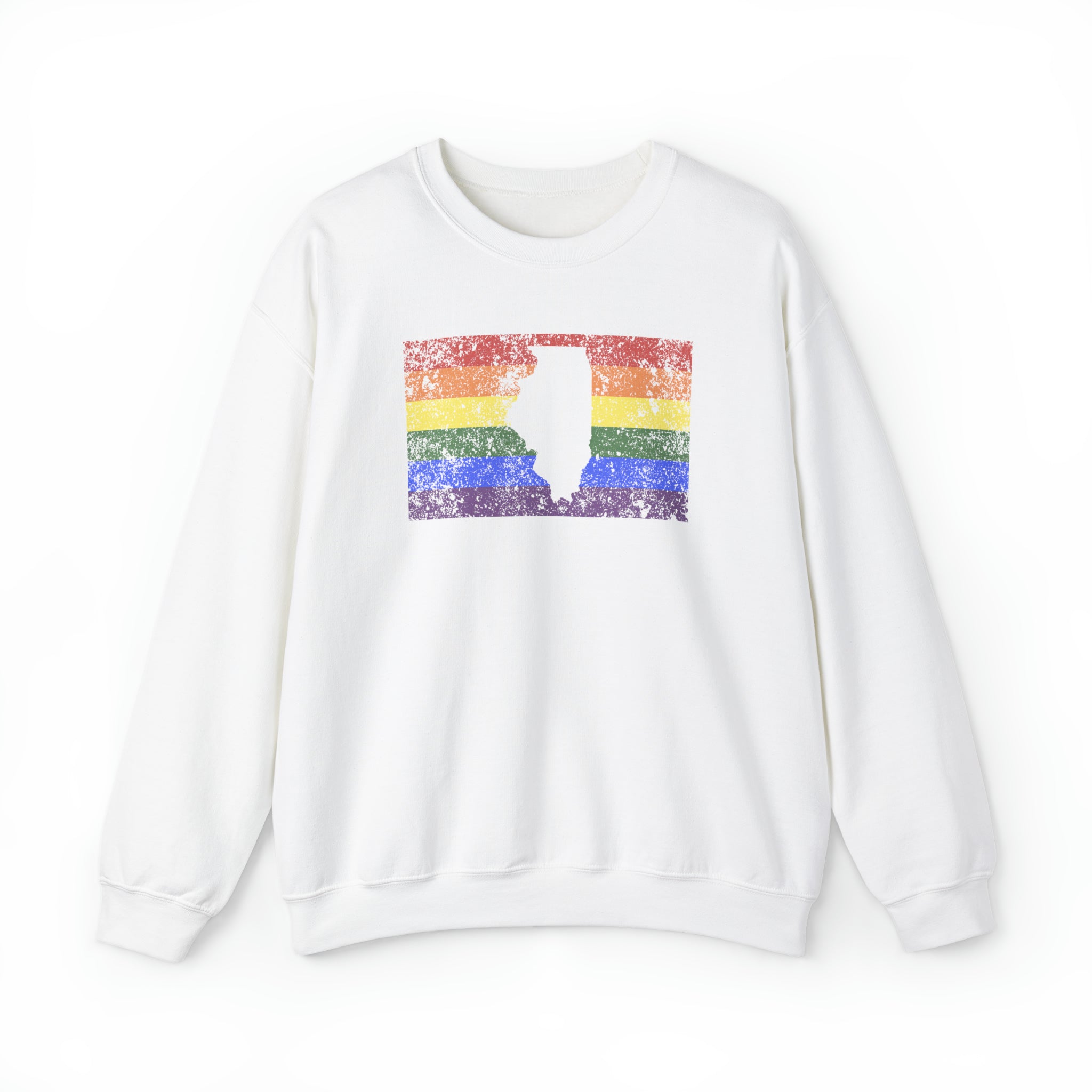 Illinois Pride Flag Sweater: Rainbow LGBTQ+ State Silhouette Distressed Sweatshirt