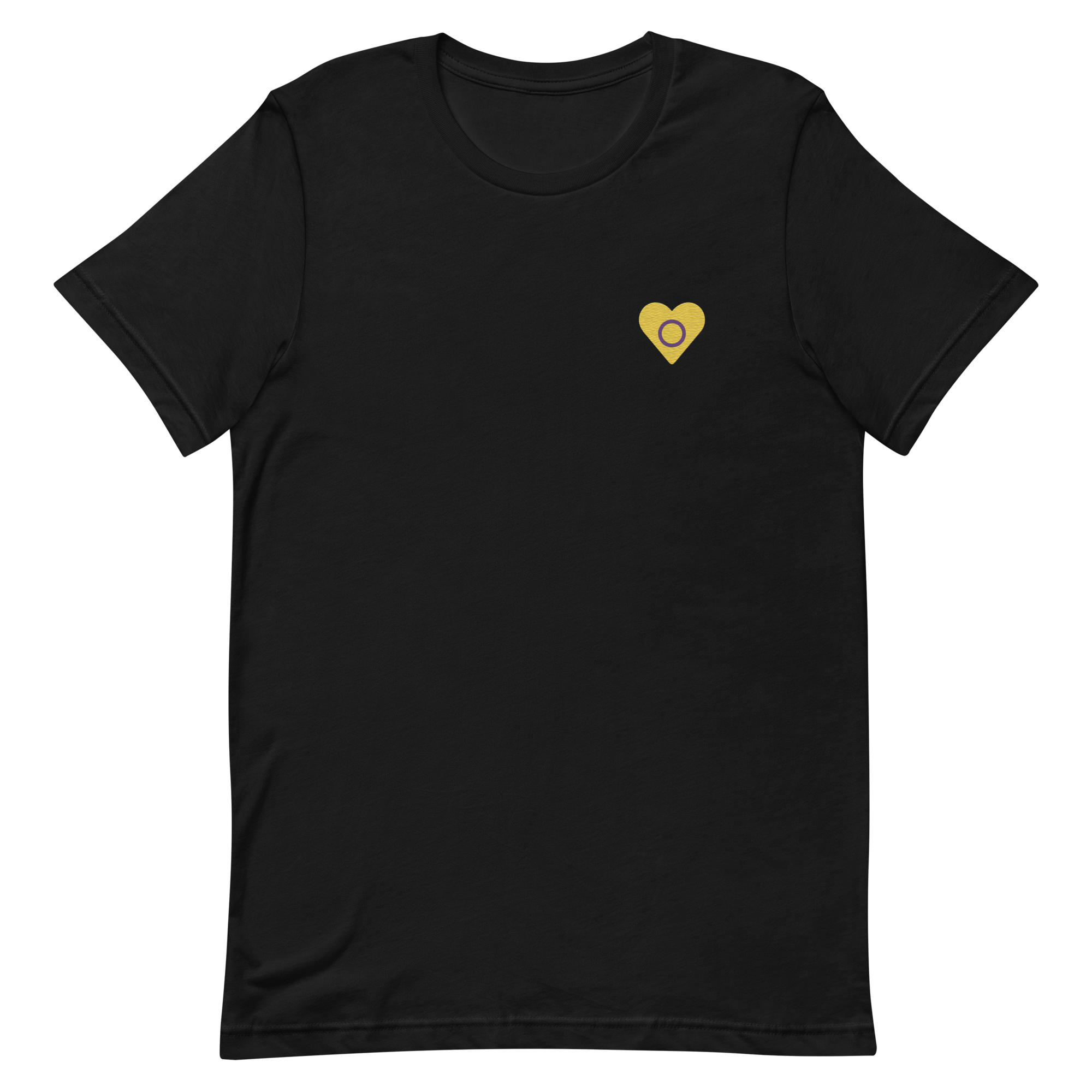 Intersex Flag Embroidered Heart T-Shirt: Celebratory LGBTQ+ Pride Design