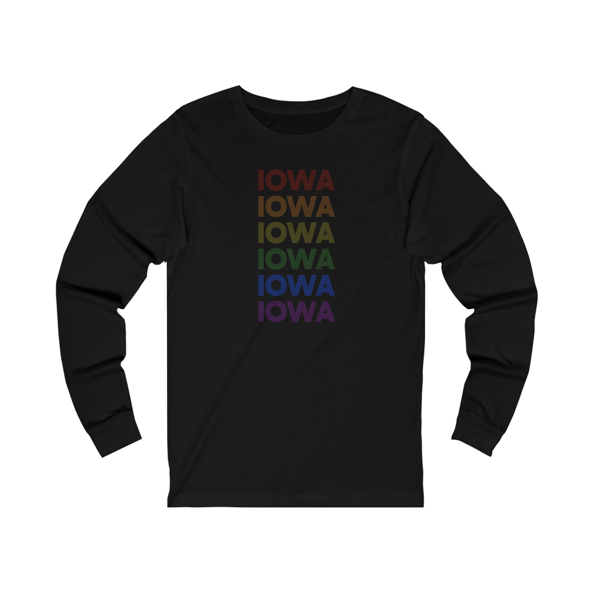 Iowa LGBTQ+ Pride Flag, Faded Black Long Sleeve Tee