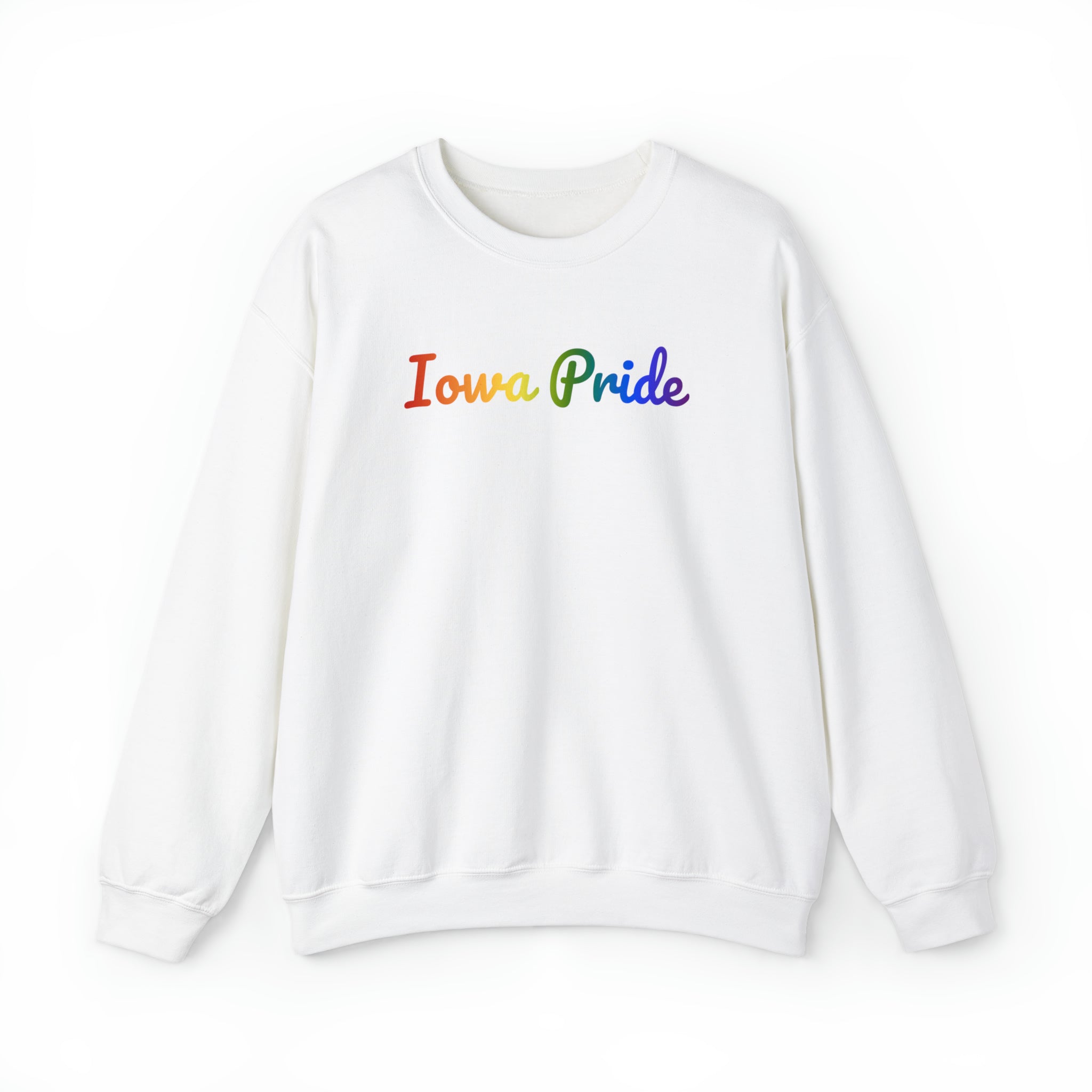 Iowa Pride Sweatshirt: Flowing Cursive Design with LGBTQ+ Gradient