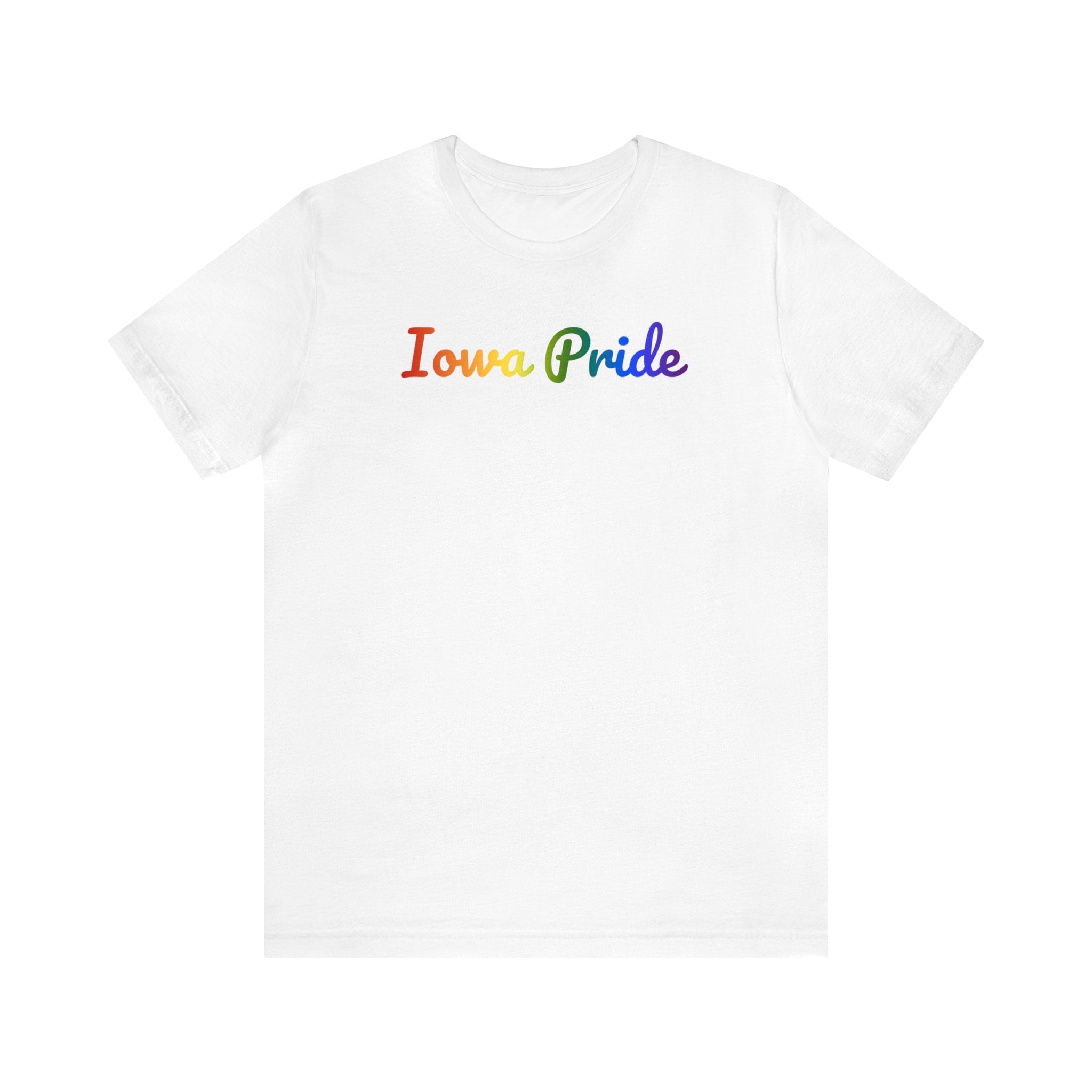 Iowa Pride T-Shirt: Flowing Cursive Design with LGBTQ+ Gradient