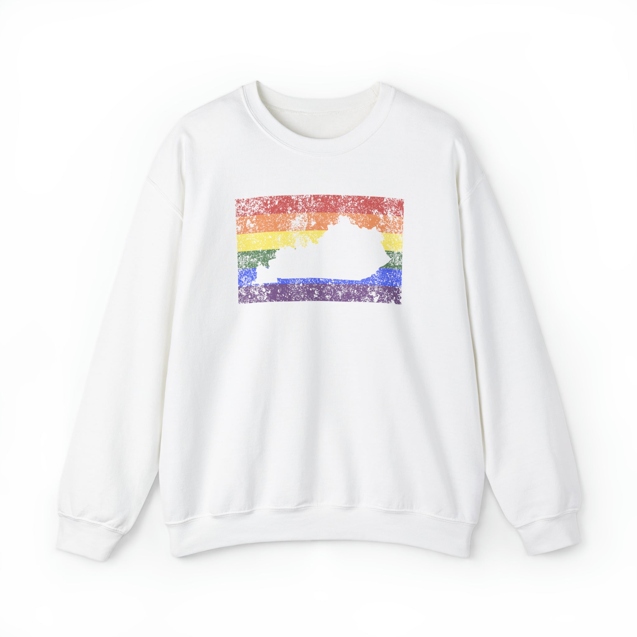 Kentucky Pride Flag Sweater: Rainbow LGBTQ+ State Silhouette Distressed Sweatshirt