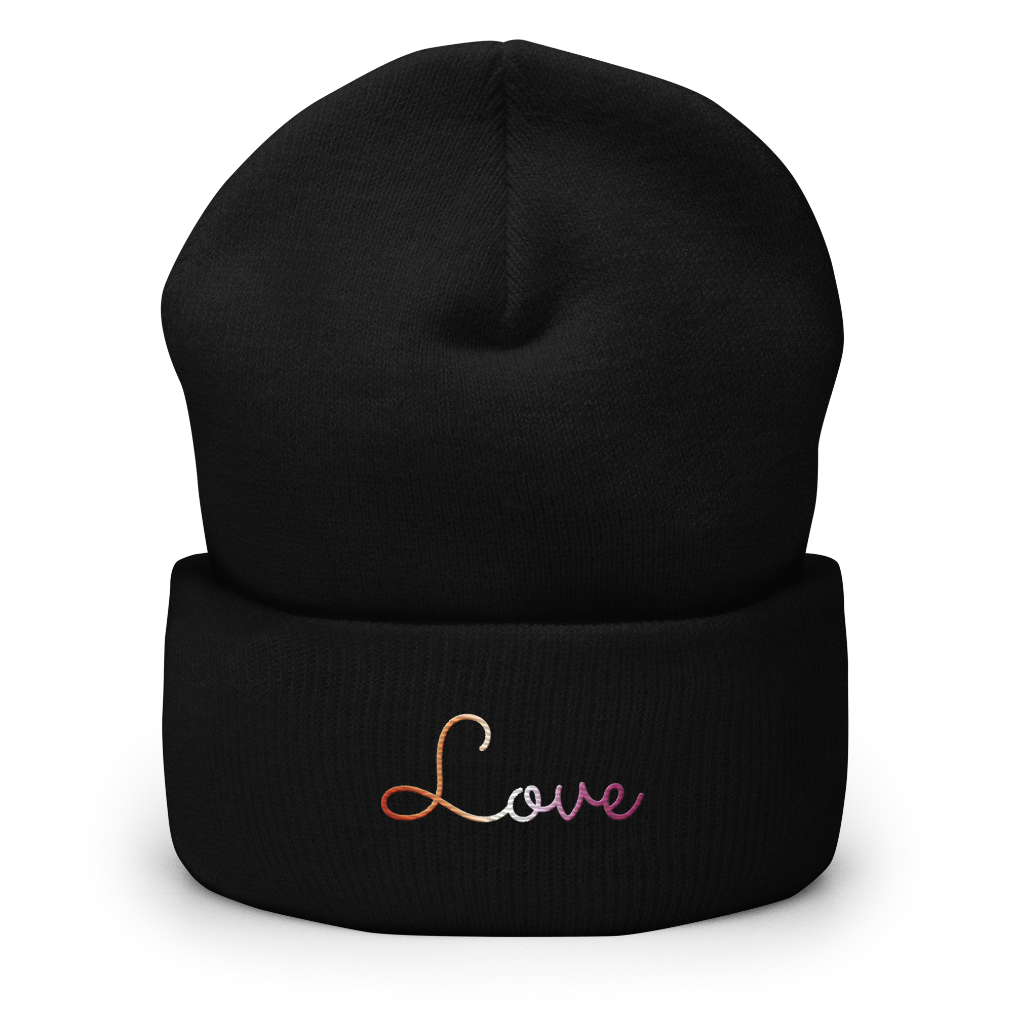 Lesbian Love Script Beanie: Ellegantly Embroidered Pride Hat