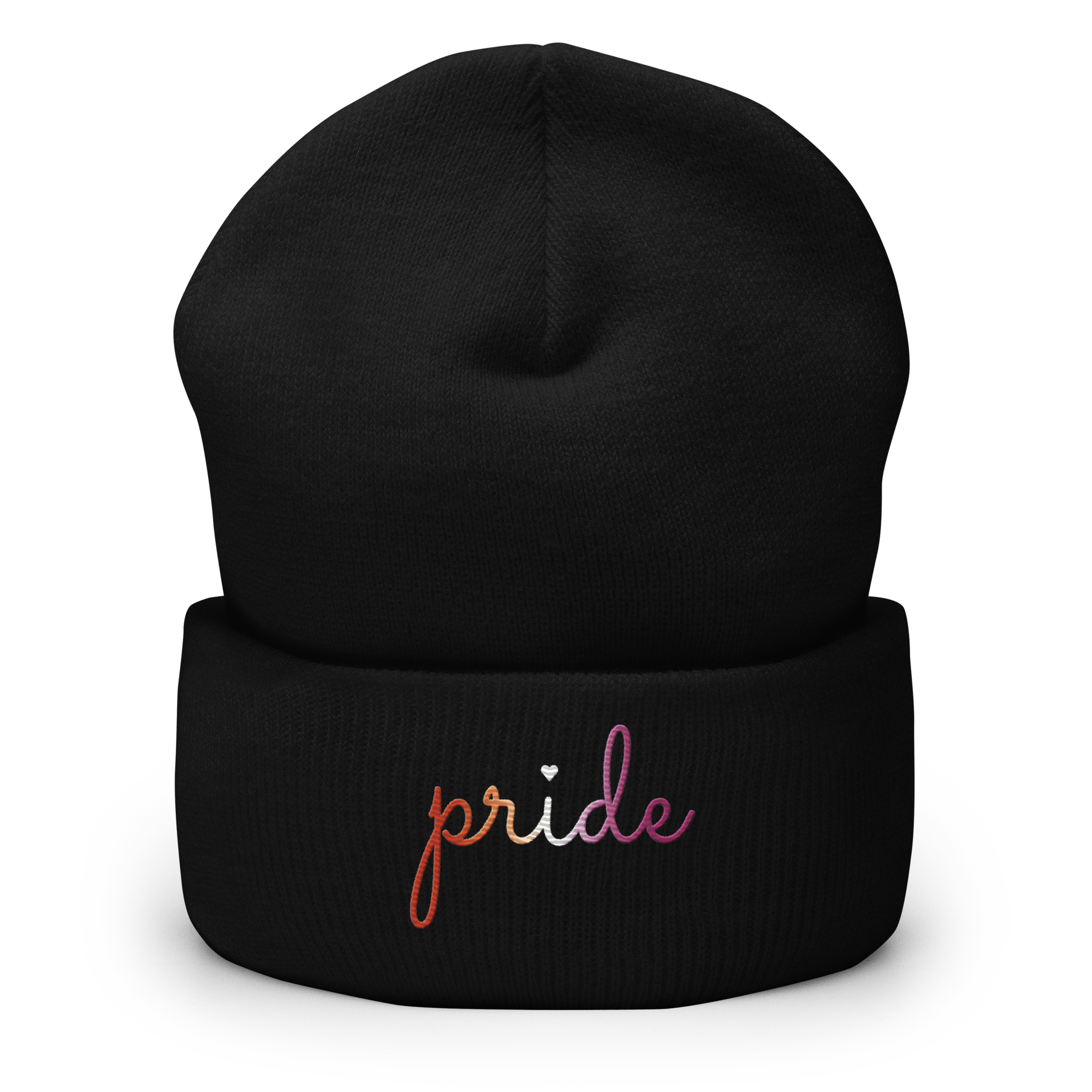 Lesbian Pride Beanie: Cursive 'Pride' in Gradient Colors
