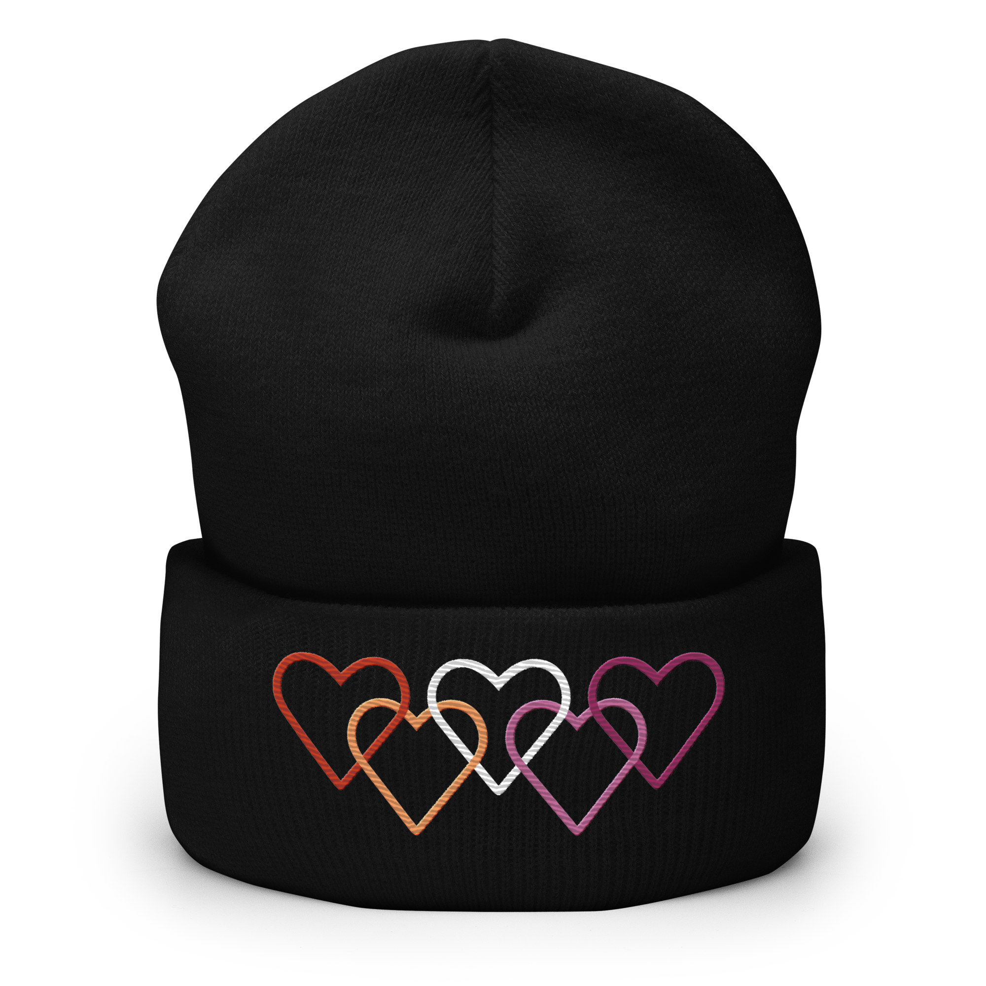 Lesbian Pride Beanie: Interlaced Heart Outlines Embroidered Hat