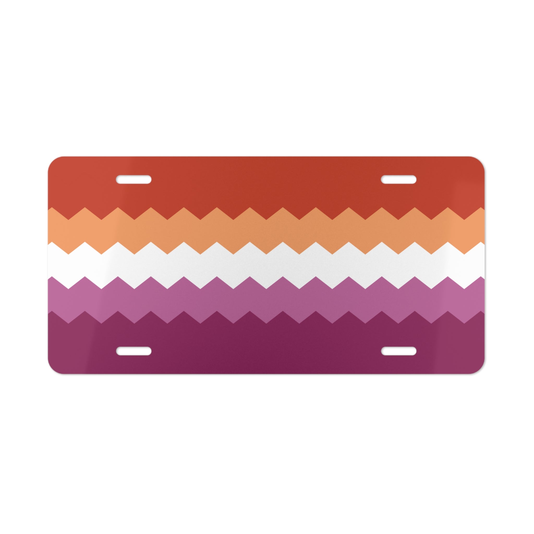 Elevate your ride with our "Lesbian Pride Flag Wavey Vanity License Plate: Sharp Design for Cars." Featuring the iconic Lesbian Pride flag in a unique sharp-wave pattern, this vanity plate adds a touch of pride to any vehicle. Crafted for durability and visibility, it's perfect for personalizing your car while showcasing your support for the Lesbian community. This eye-catching design, with its vibrant colors and fluid pattern, isn't just a statement of identity; it's a celebration on wheels. Whether cruising the city streets or hitting the open road, let your pride fly high with this stunning Lesbian Pride flag car accessory.