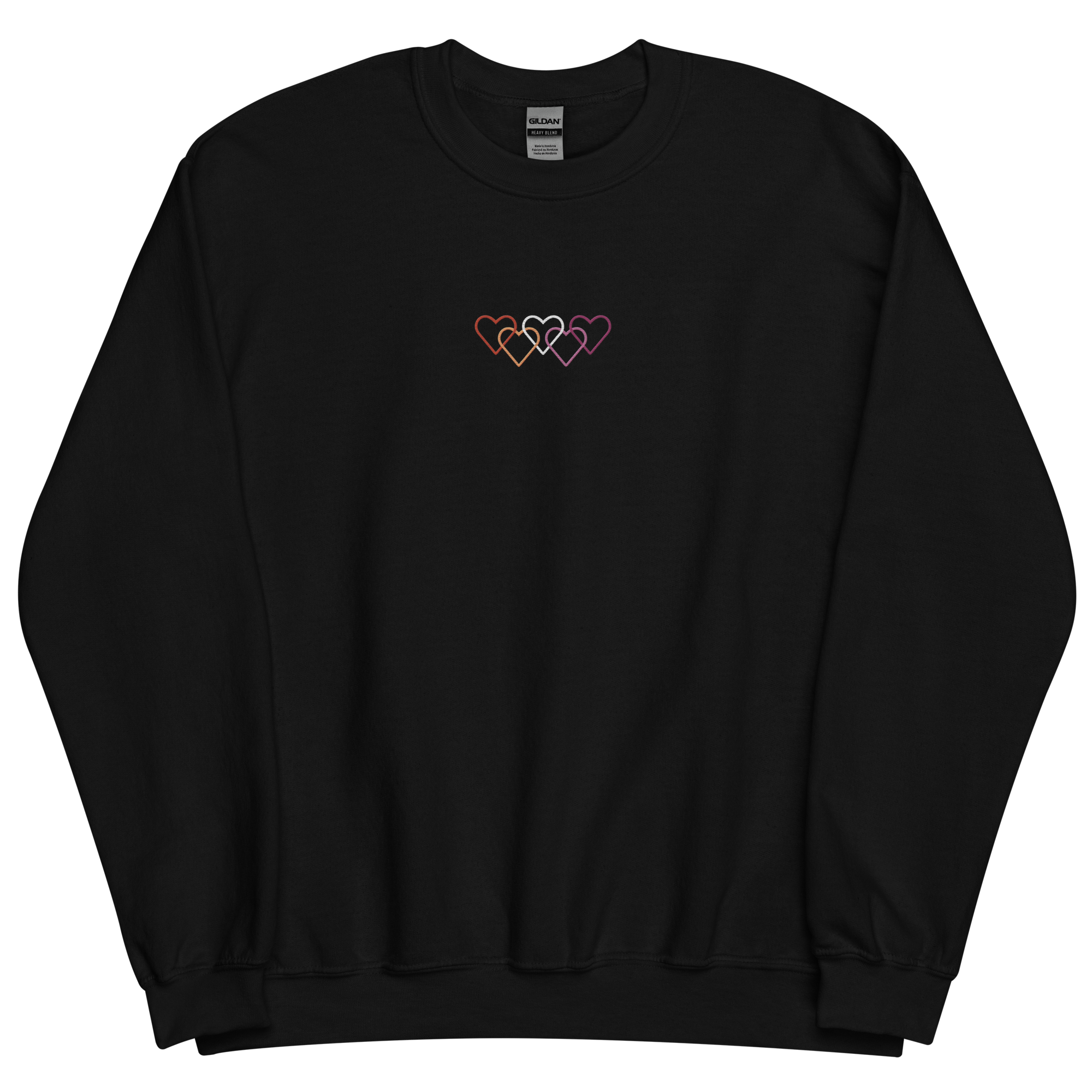 Lesbian Pride Sweatshirt: Interlaced Heart Outlines Embroidered Sweater
