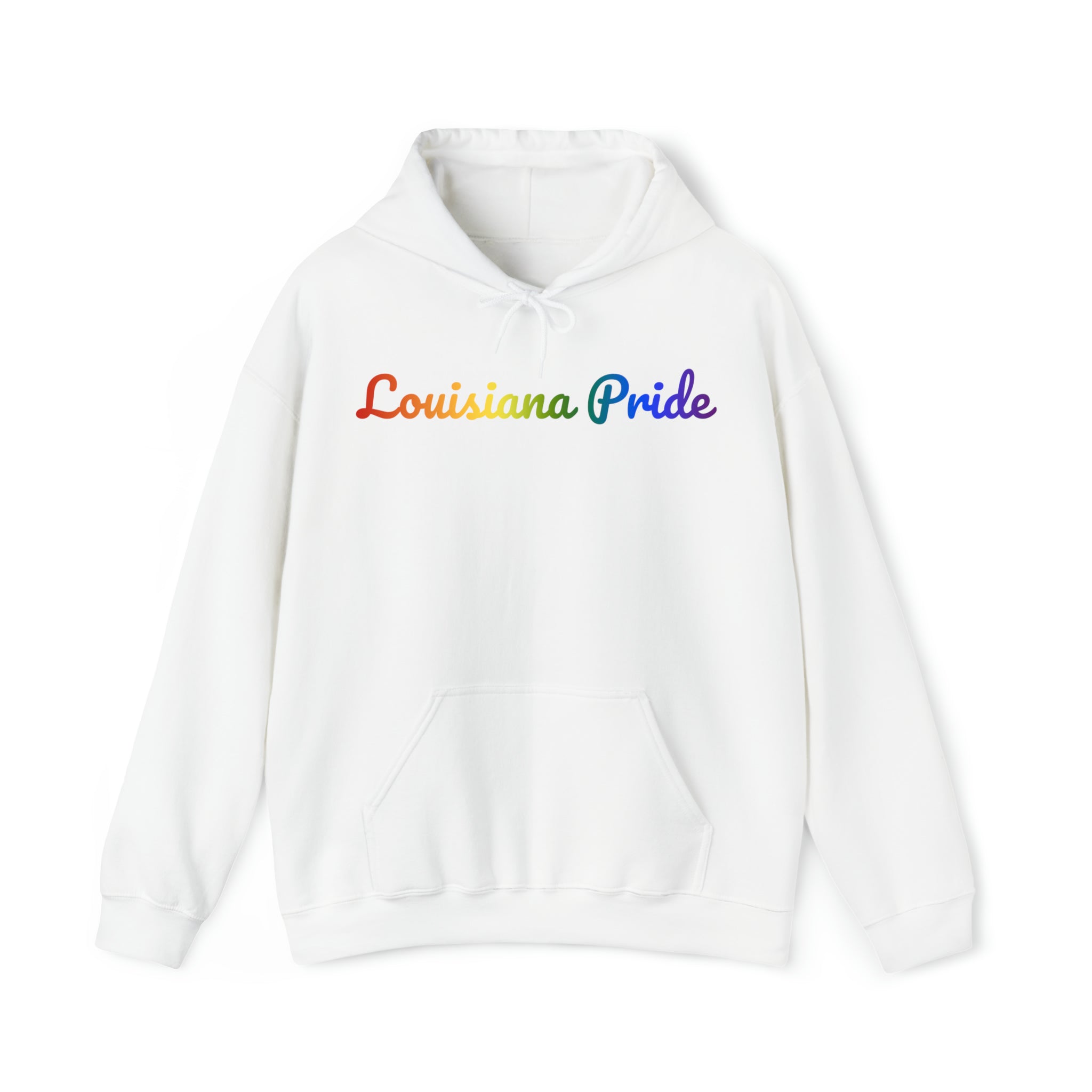 Louisiana Pride Hoodie: Flowing Cursive Design with LGBTQ+ Gradient