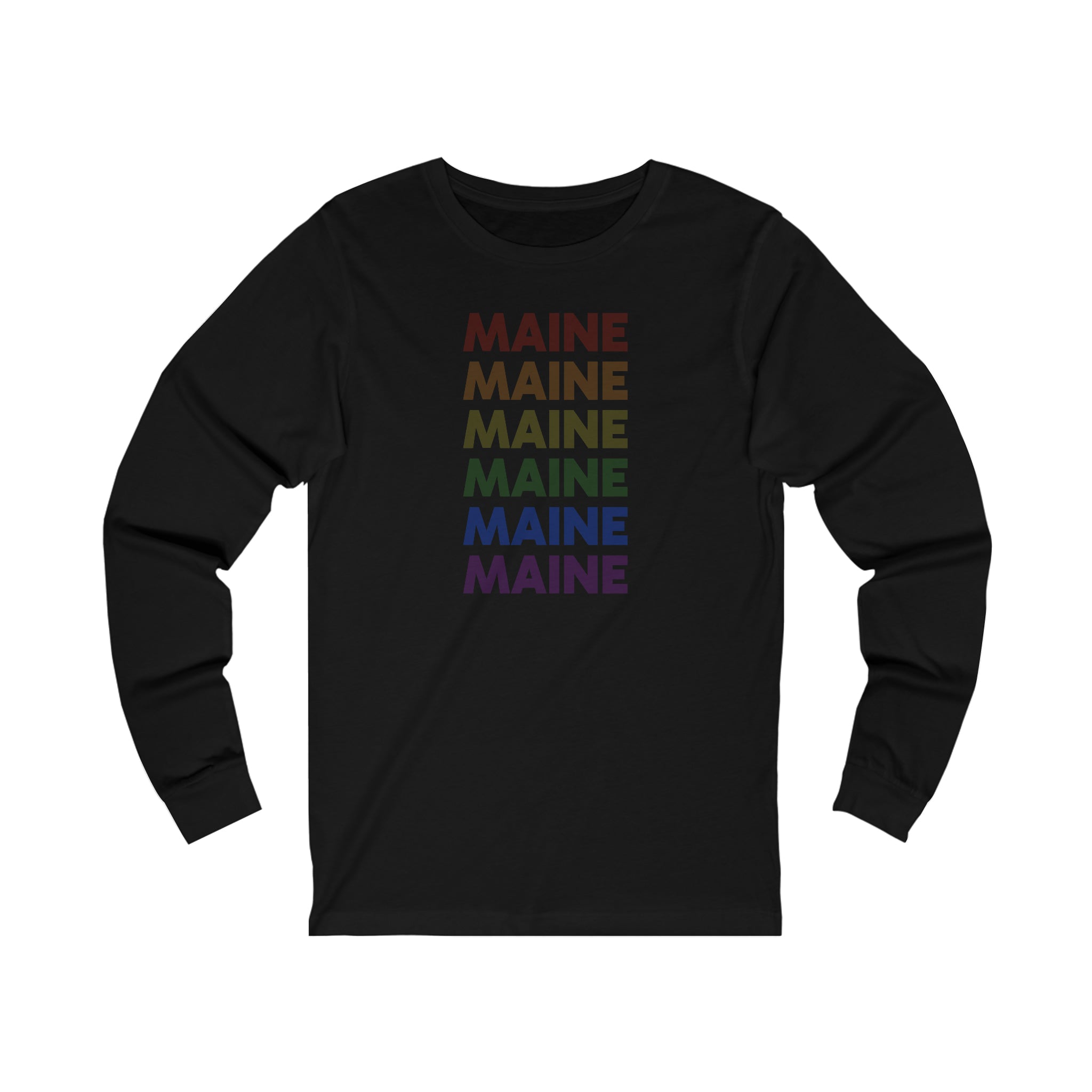 Maine LGBTQ+ Pride Flag, Faded Black Long Sleeve Tee