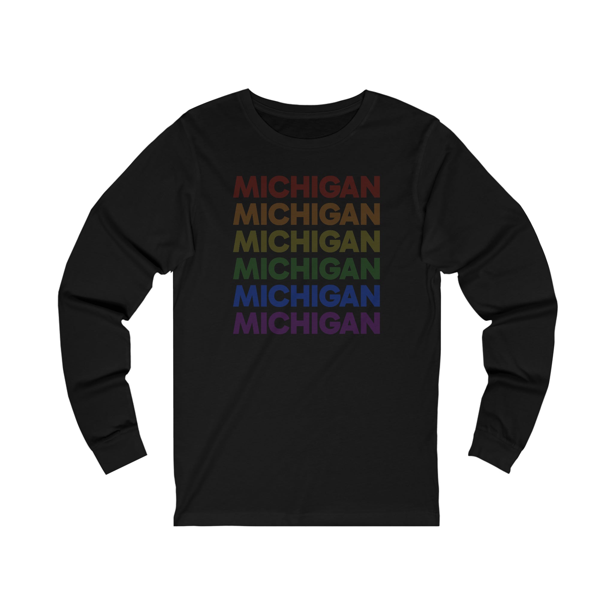 Michigan LGBTQ+ Pride Flag, Faded Black Long Sleeve Tee