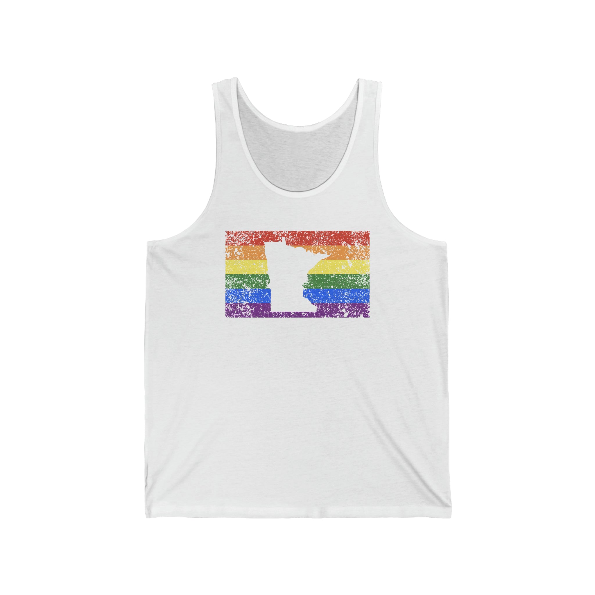 Minnesota Pride Flag Tank: Rainbow LGBTQ+ State Silhouette Distressed Tank-Top