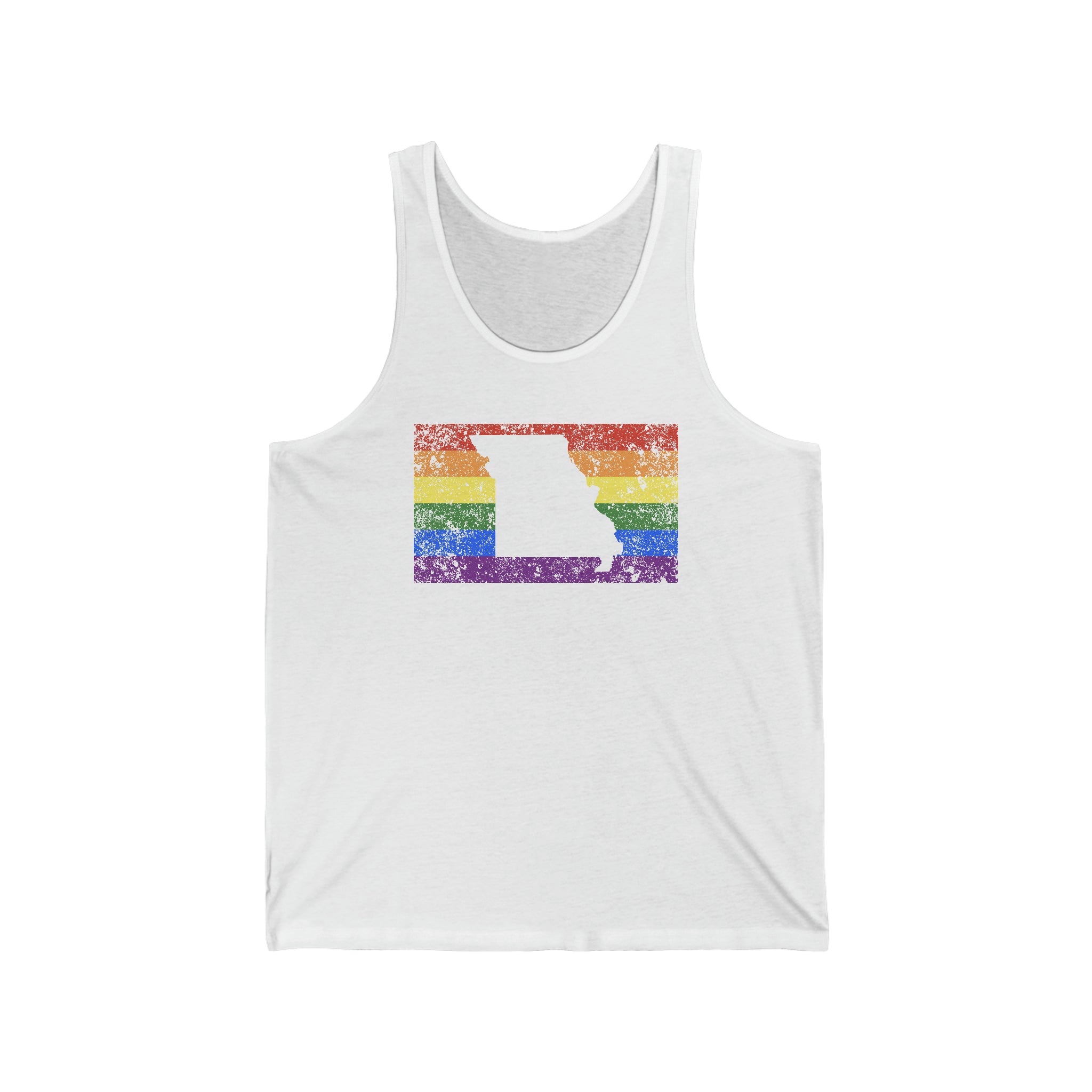 Missouri Pride Flag Tank: Rainbow LGBTQ+ State Silhouette Distressed Tank-Top