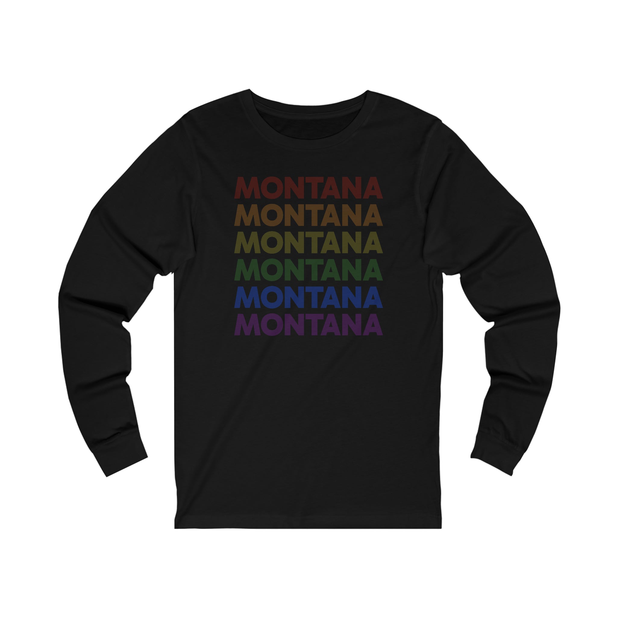 Montana LGBTQ+ Pride Flag, Faded Black Long Sleeve Tee