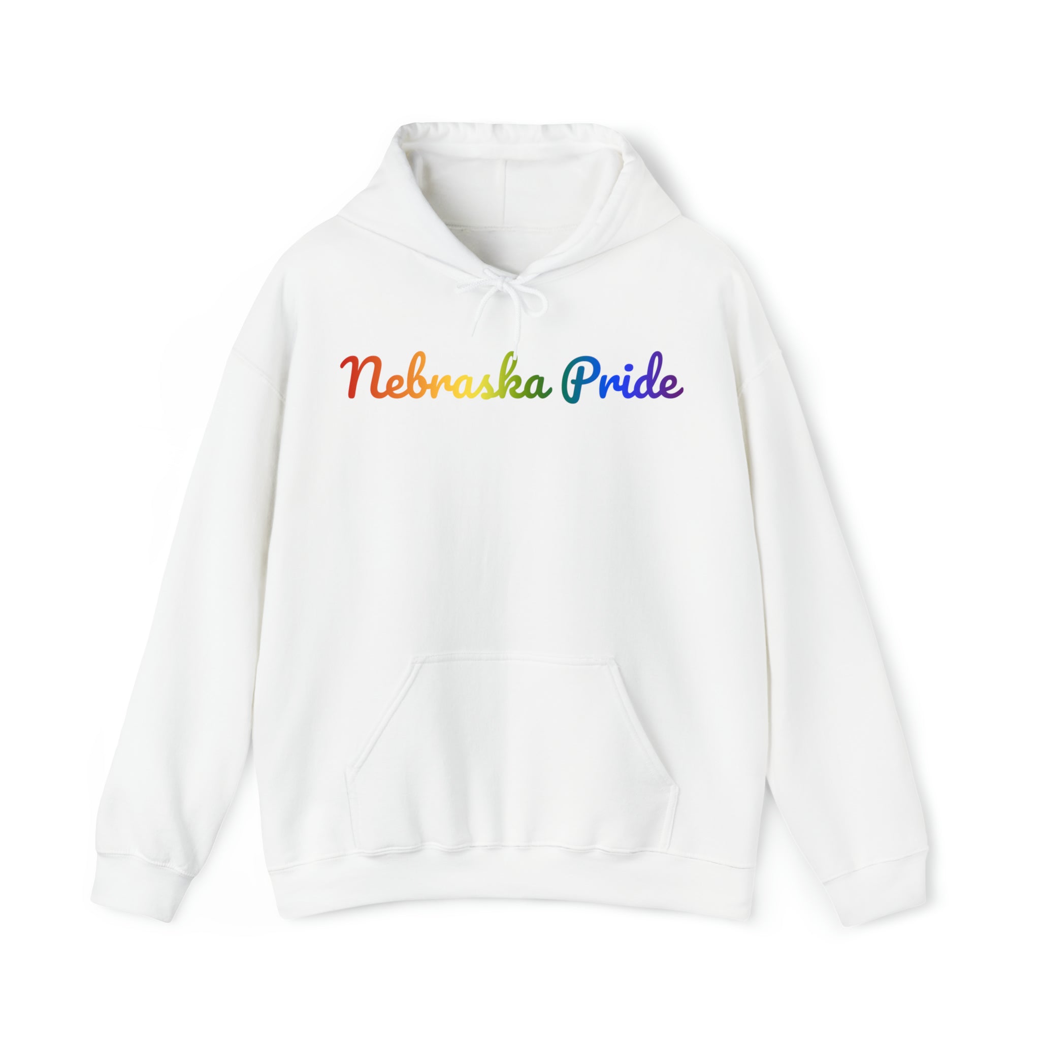 Nebraska Pride Hoodie: Flowing Cursive Design with LGBTQ+ Gradient