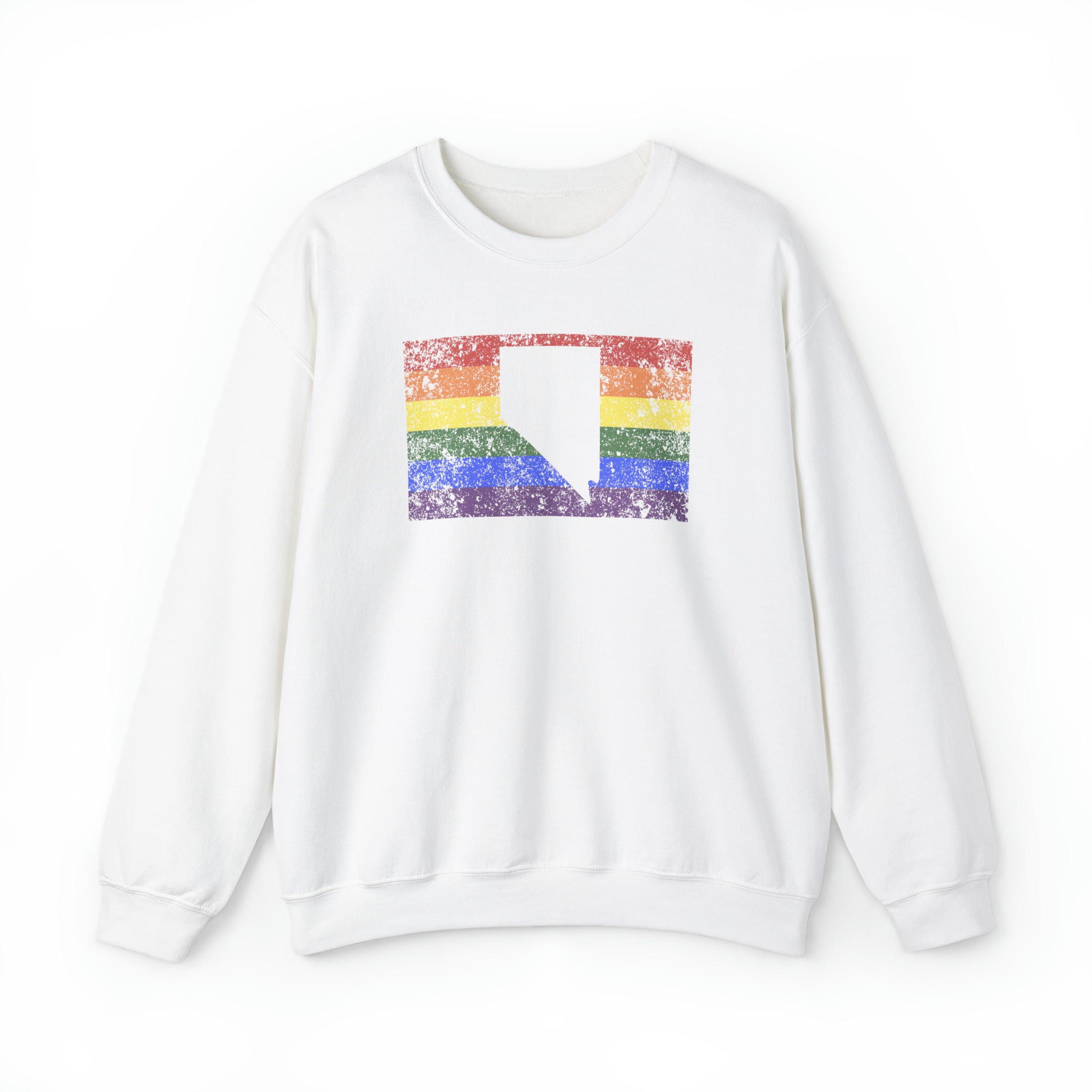 Nevada Pride Flag Sweater: Rainbow LGBTQ+ State Silhouette Distressed Sweatshirt