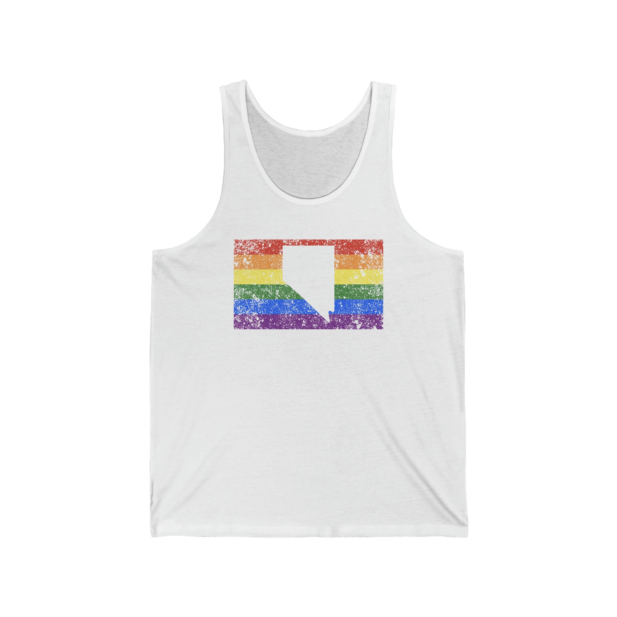 Nevada Pride Flag Tank: Rainbow LGBTQ+ State Silhouette Distressed Tank-Top