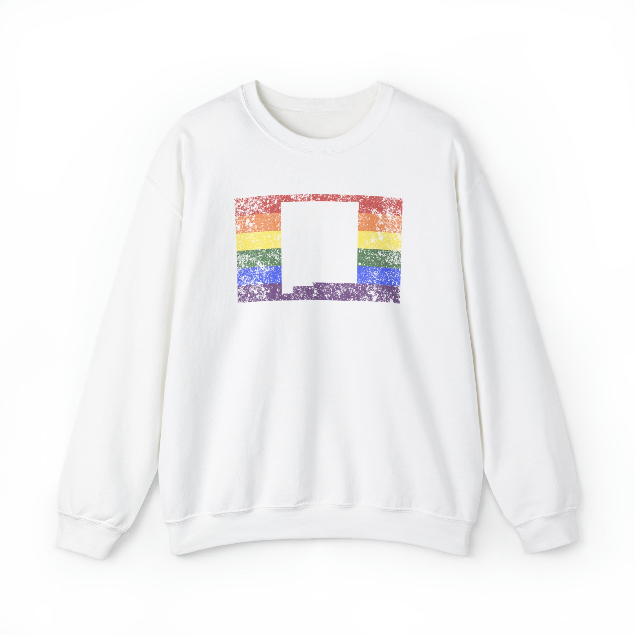 New Mexico Pride Flag Sweater: Rainbow LGBTQ+ State Silhouette Distressed Sweatshirt