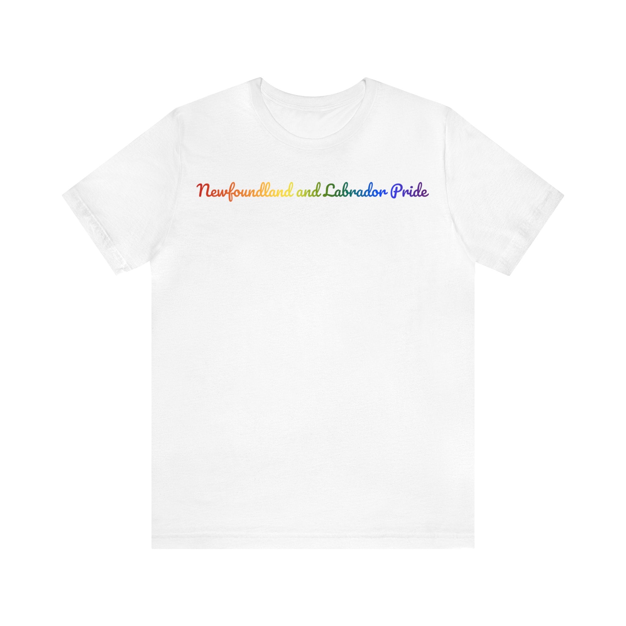 Newfoundland and Labrador Pride T-Shirt: Flowing Cursive Design with LGBTQ+ Gradient