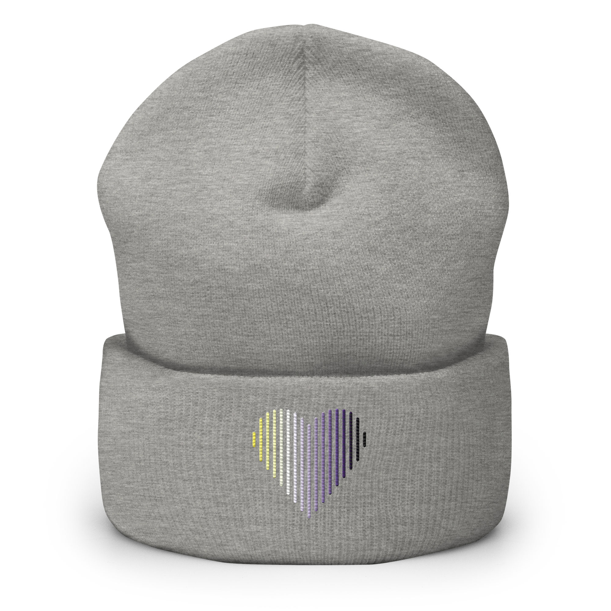 Nonbinary Heart Lines Beanie: Embroidered Pride Gradient Hat