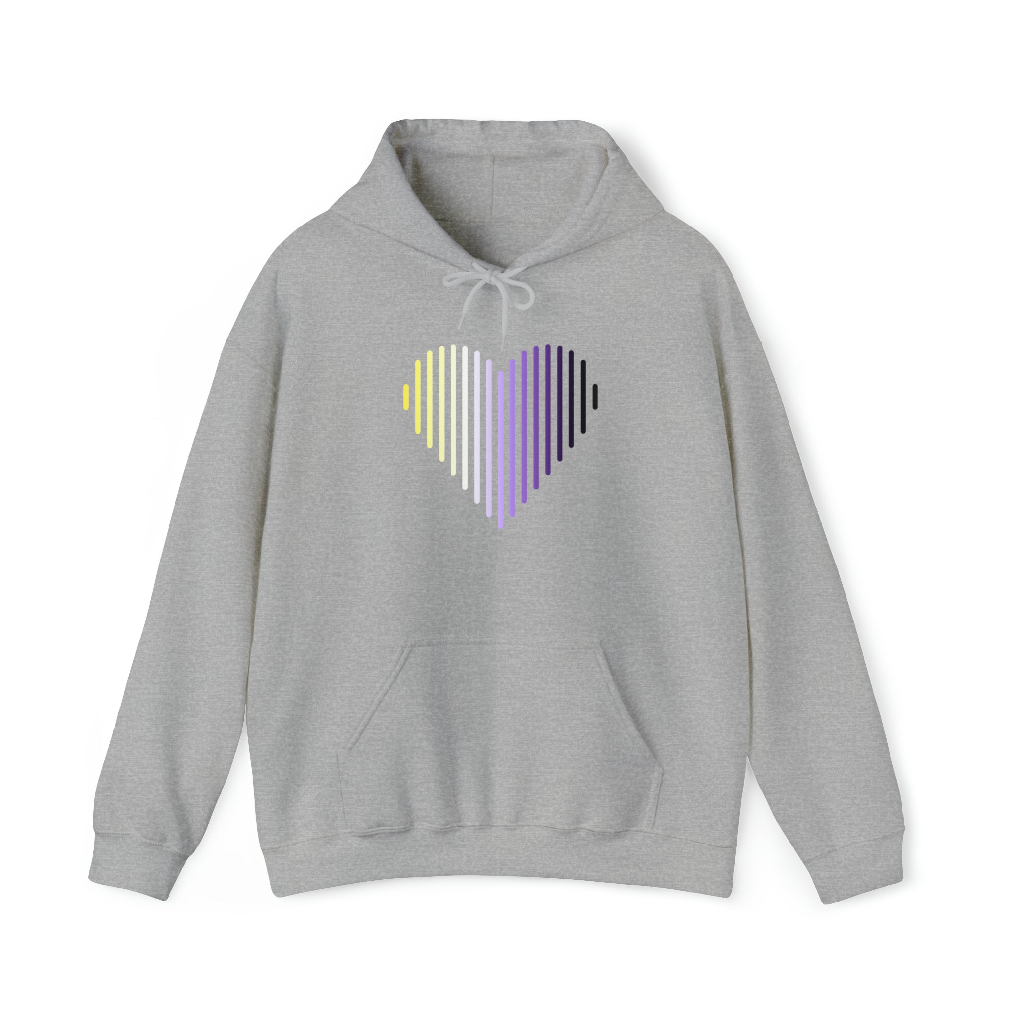 Nonbinary Heart Lines Hoodie: Pride Gradient Sweater