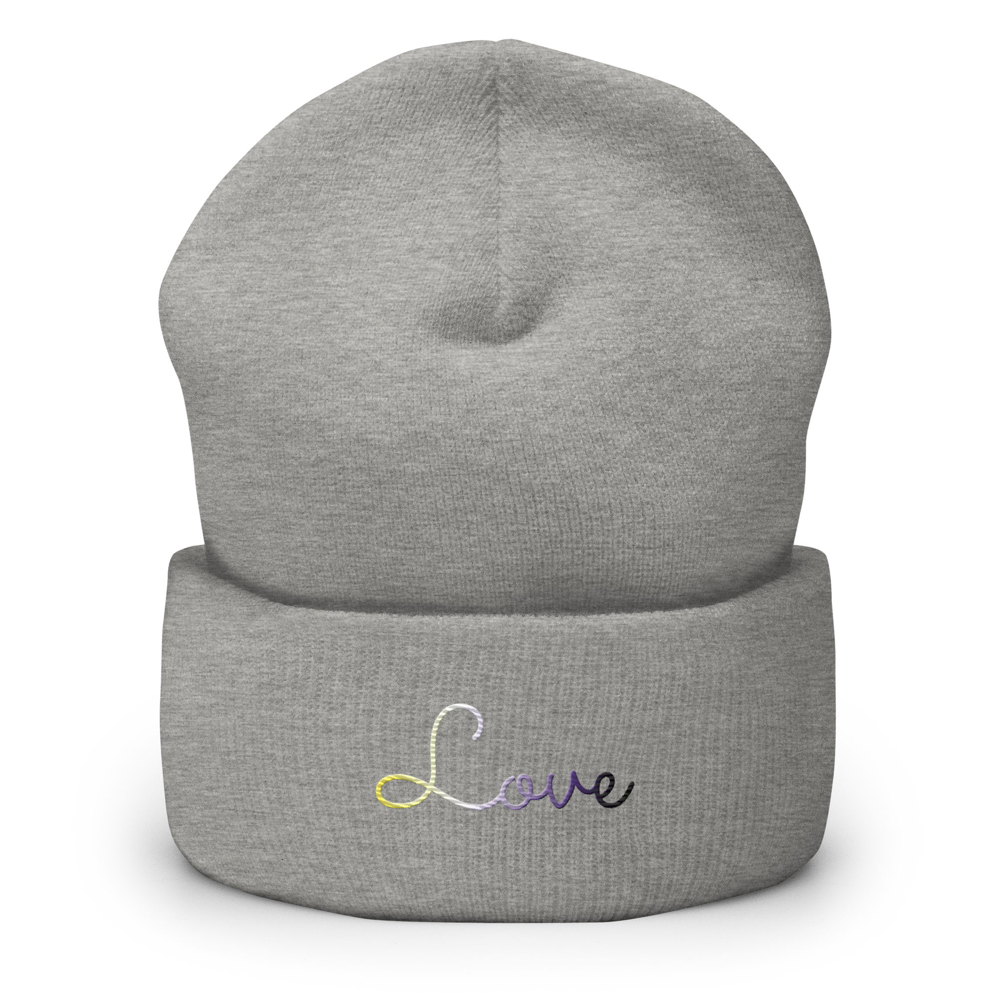 Nonbinary Love Script Beanie: Ellegantly Embroidered Pride Hat