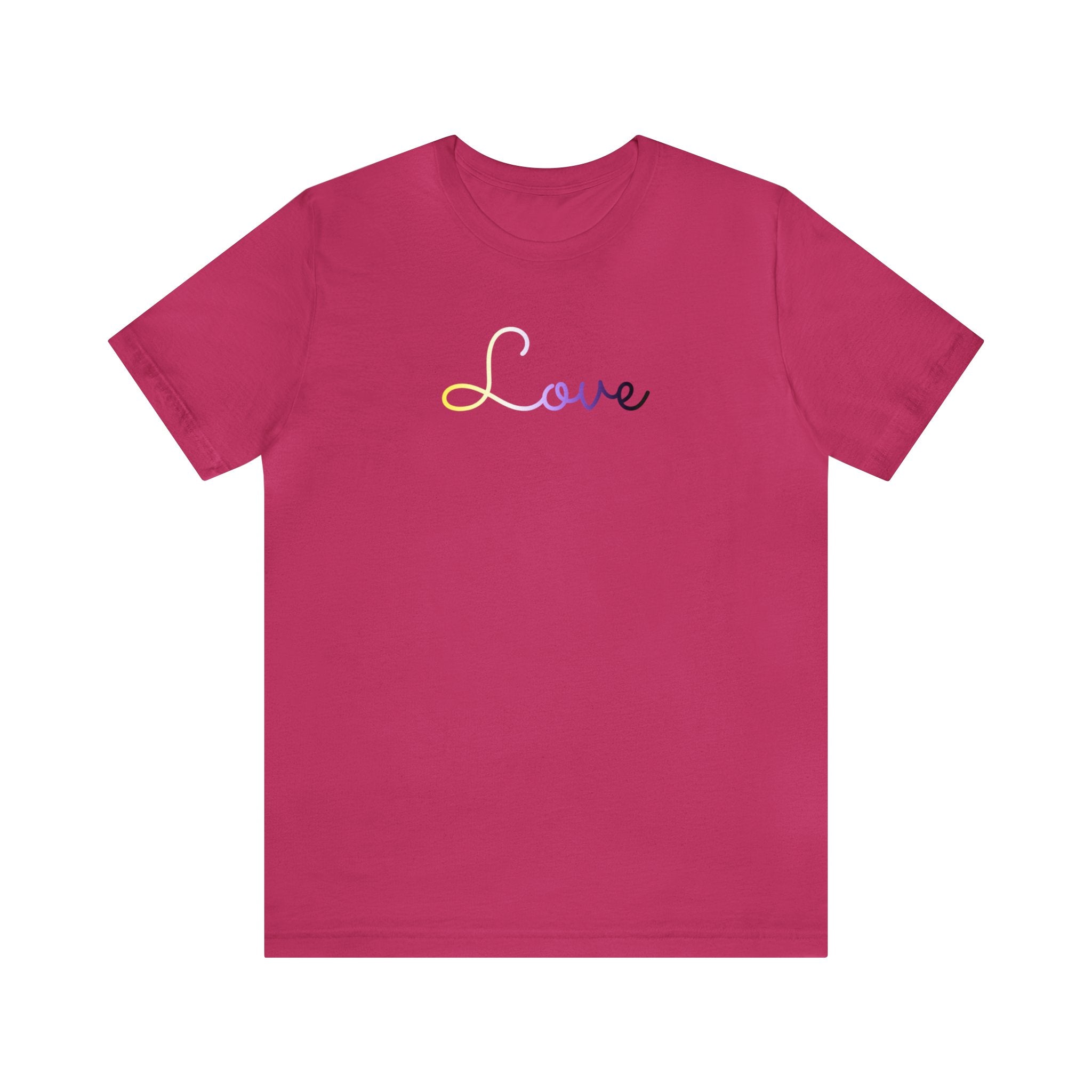 Celebrate your identity with our "Nonbinary Love Script T-Shirt: Subtly Elegant Pride Apparel." Infused with the heartwarming script of 'Love' and the hues of Nonbinary pride, this tee merges elegance with significance. Crafted for those who value both style and sentiment, its subtle design shines brightly for the Nonbinary community. It's not just a tee—it's a statement of pride, love, and identity. Perfect for Pride Month or everyday wear, this premium-quality t-shirt speaks volumes with its understated elegance. Step into the spotlight this season with a tee that embodies Nonbinary pride and love in every detail. Stand out, feel proud, and embrace the elegance.