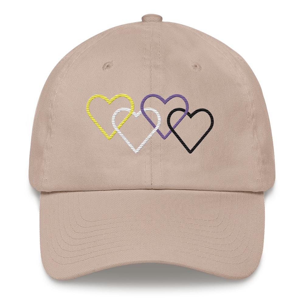 Nonbinary Pride Hat: Interlaced Heart Outlines Embroidered Cap