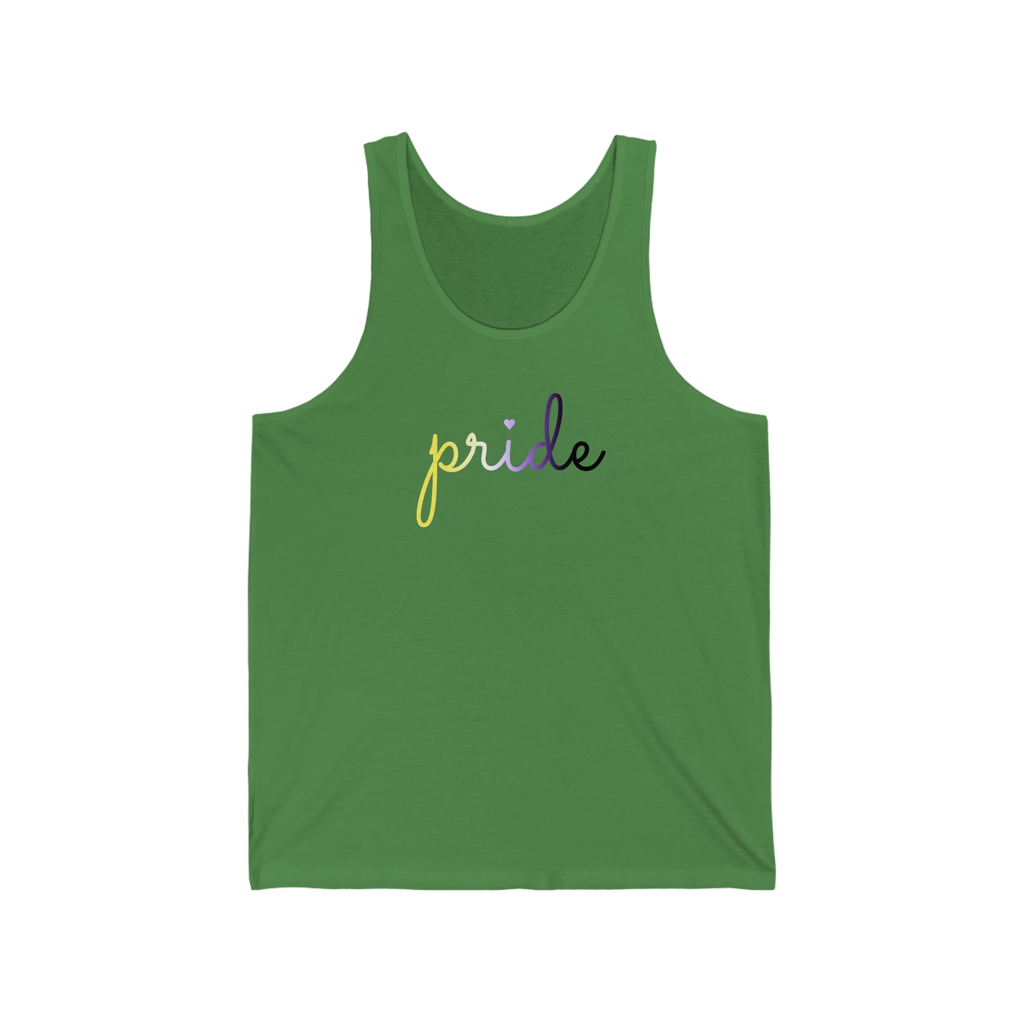 Nonbinary Pride Tank-Top: Flowing Cursive 'Pride' in Gradient Hues