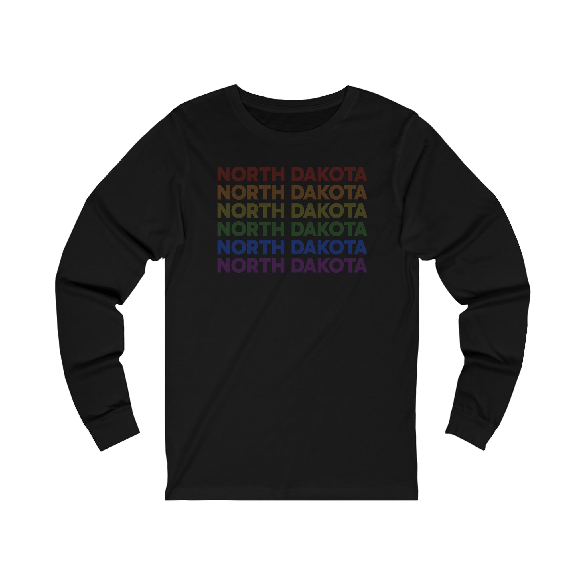 North Dakota LGBTQ+ Pride Flag, Faded Black Long Sleeve Tee