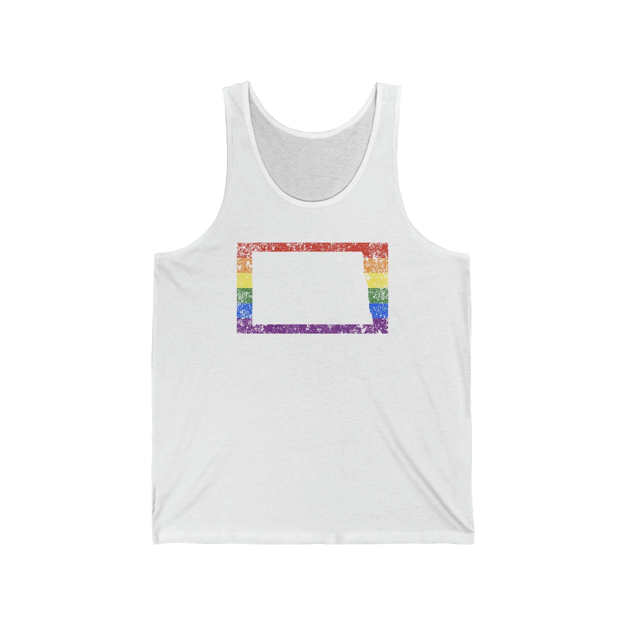 North Dakota Pride Flag Tank: Rainbow LGBTQ+ State Silhouette Distressed Tank-Top