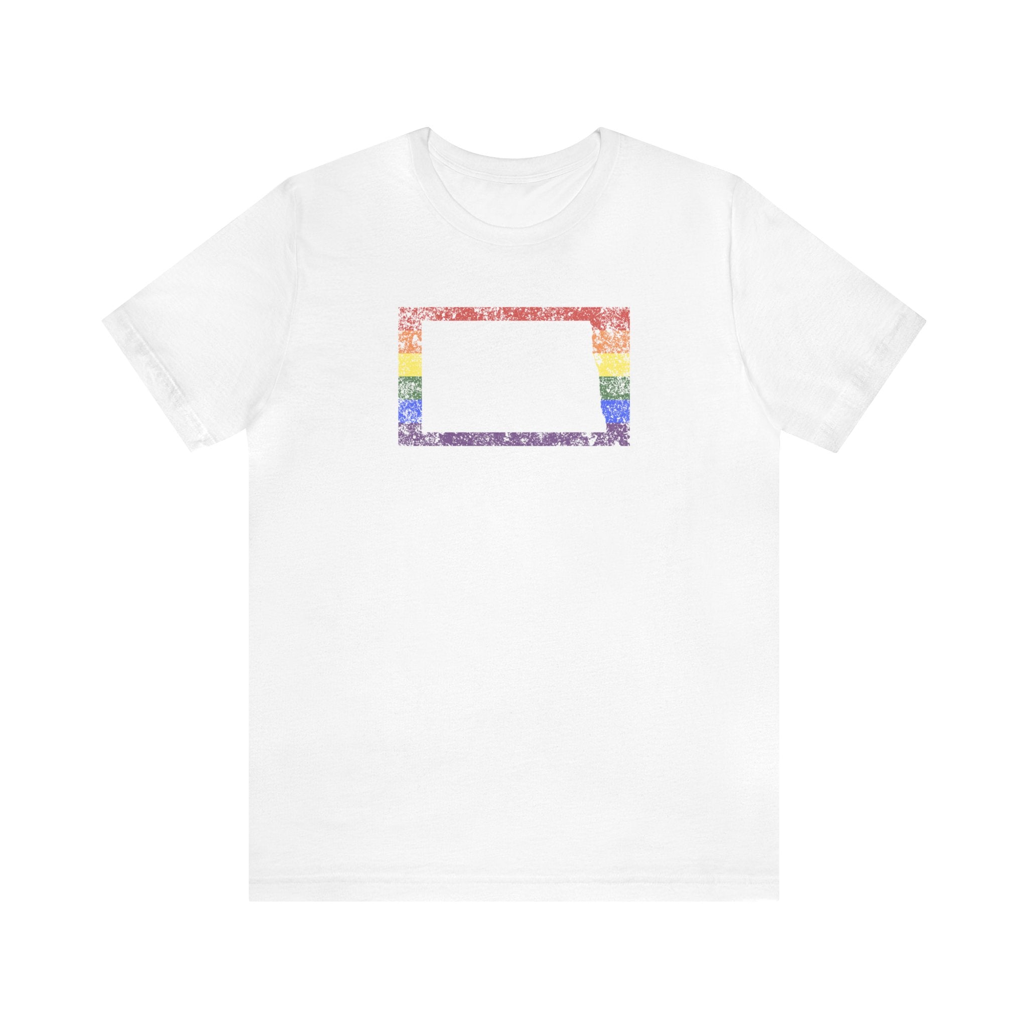 North Dakota Pride Flag Tee: Rainbow LGBTQ+ State Silhouette Distressed Shirt