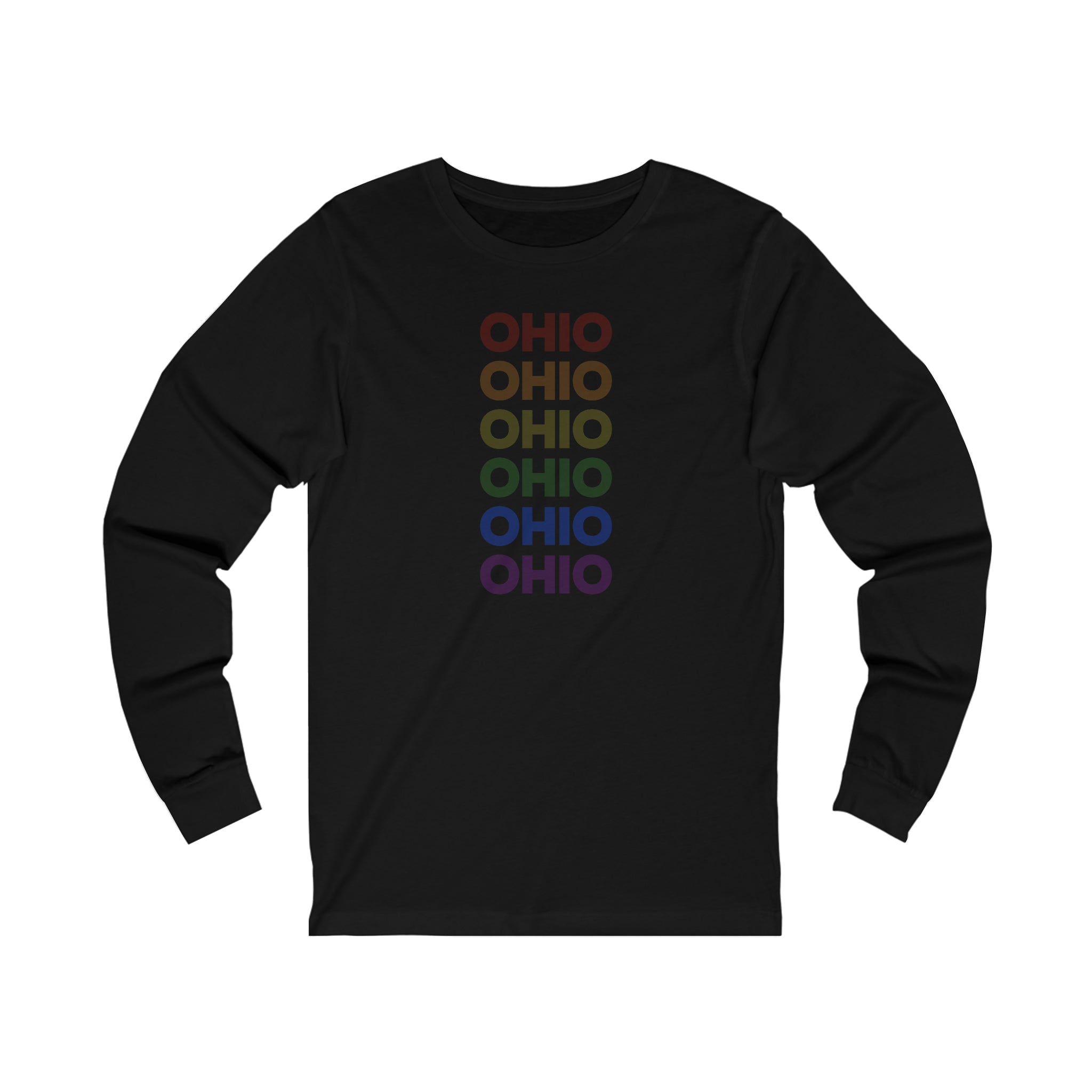 Ohio LGBTQ+ Pride Flag, Faded Black Long Sleeve Tee