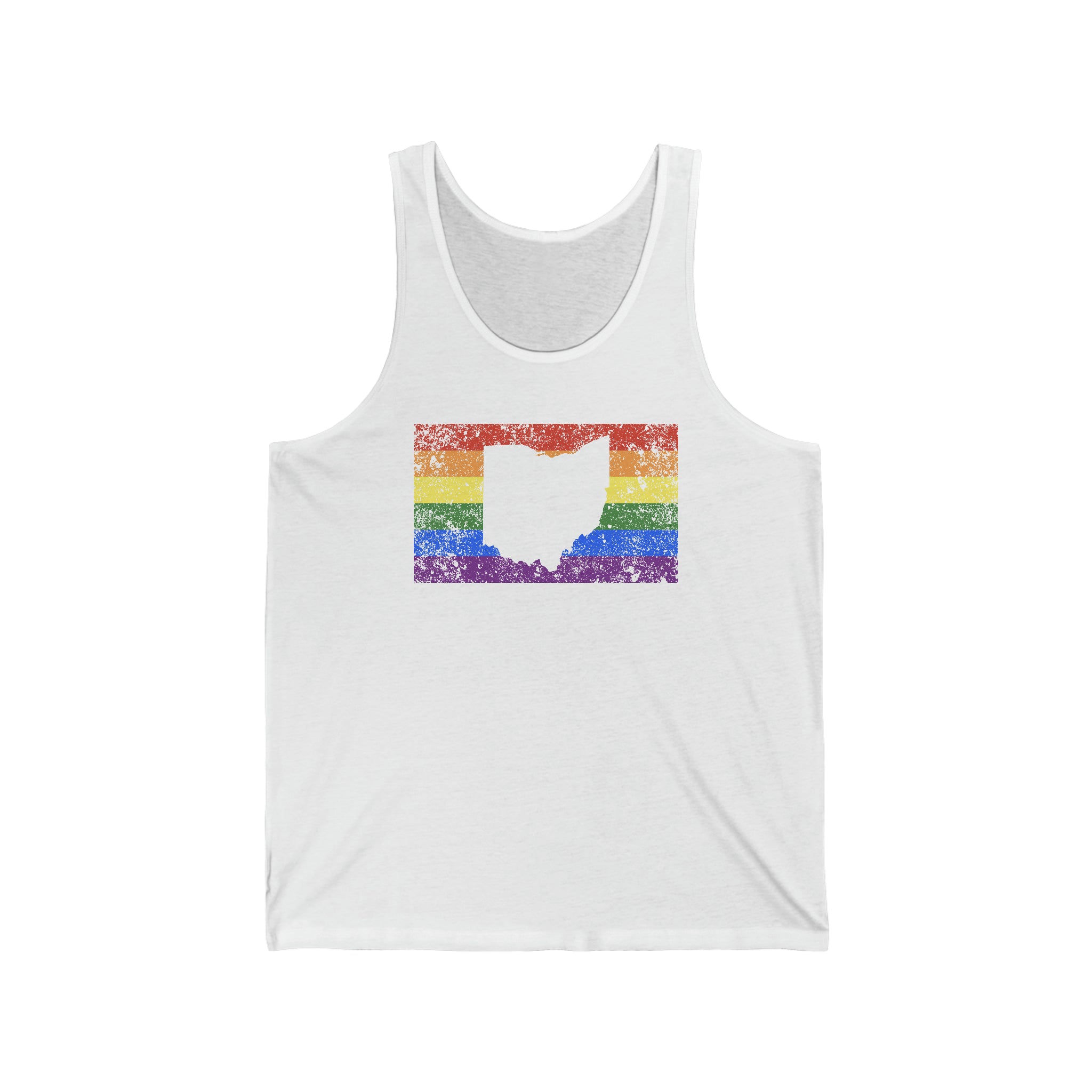 Ohio Pride Flag Tank: Rainbow LGBTQ+ State Silhouette Distressed Tank-Top