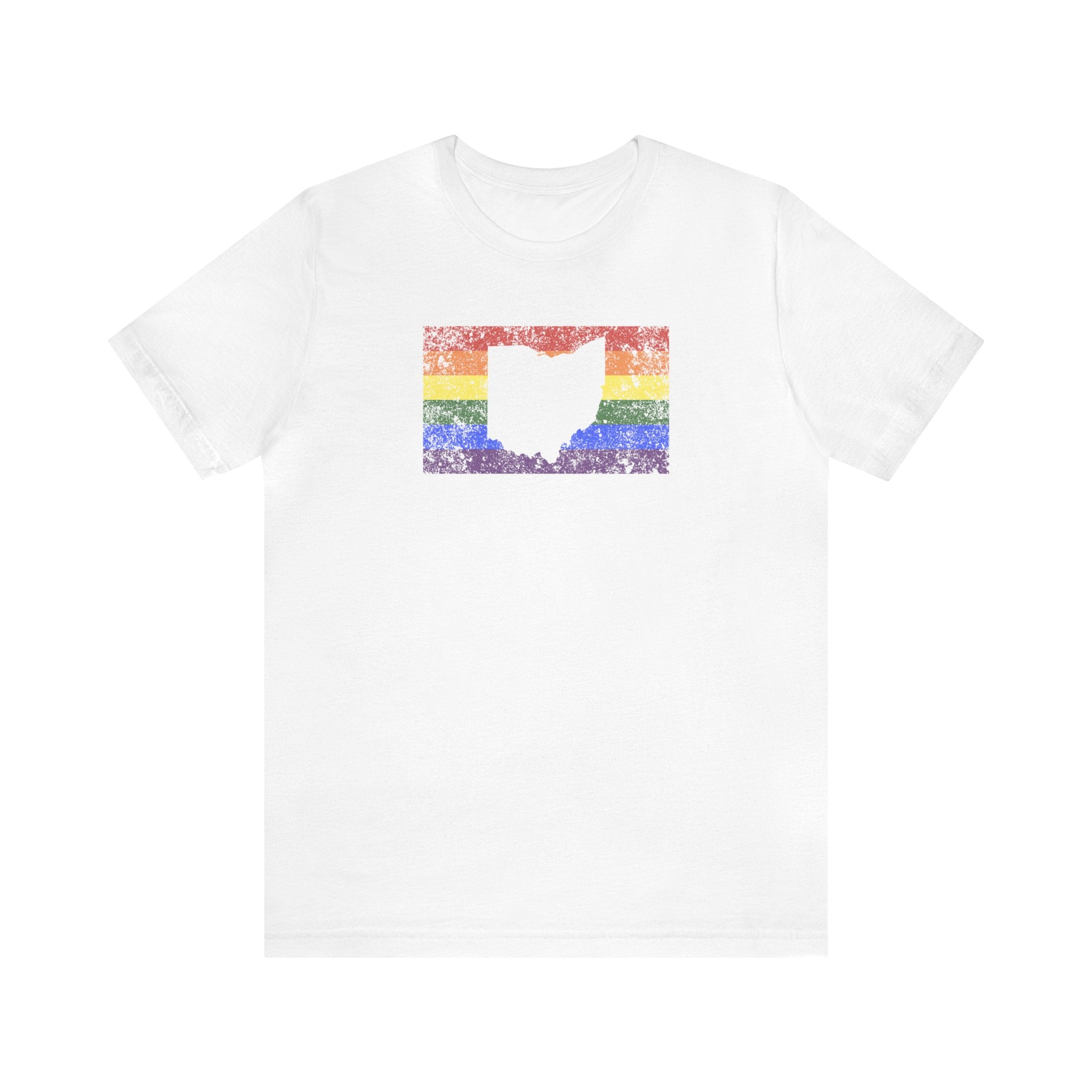 Ohio Pride Flag Tee: Rainbow LGBTQ+ State Silhouette Distressed Shirt
