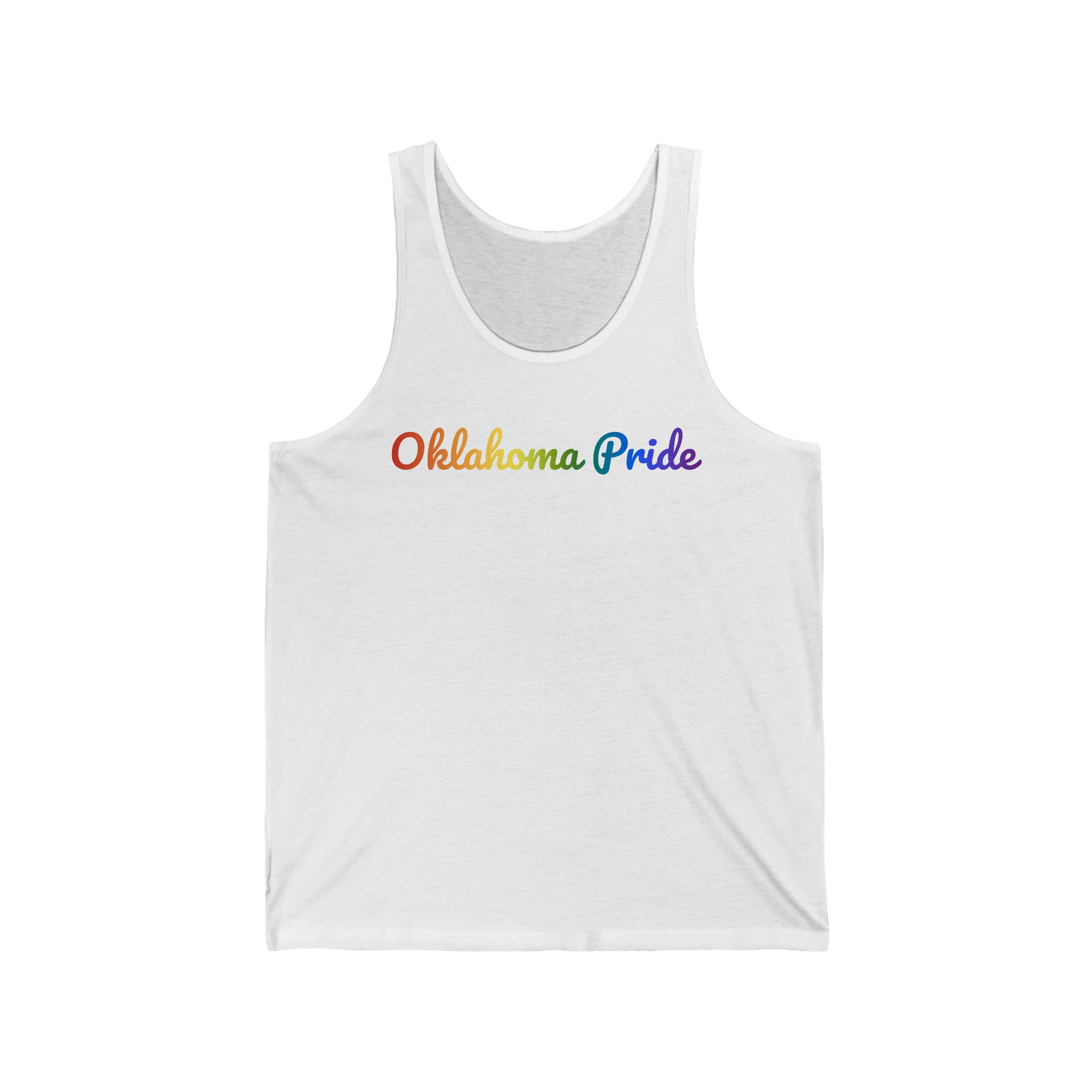 Oklahoma Pride Tank Top: Flowing Cursive Design with LGBTQ+ Gradient